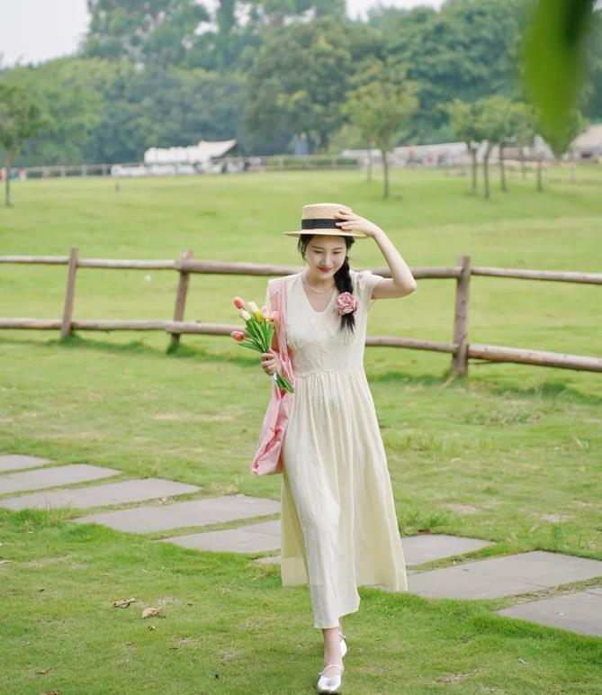 森系文藝的氧氣感穿搭,一整套給人的感覺是那麼清新又唯美,自帶浪漫氣息的連衣裙,加上一雙瑪麗珍單鞋,真的很不失溫柔氣質。低飽和度的顏色,淺淺的,讓你看起來很清爽乾淨。