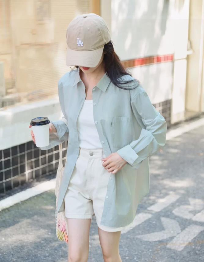 這個夏天,一定要試試氧氣感的穿搭,很清爽的薄荷綠襯衫,和乾淨的白色一樣,都能在視覺上爲你帶來降溫的效果。寬鬆的版型,可以直接單穿,也可以當作防曬衫穿,顯瘦舒適又不失氣質感。