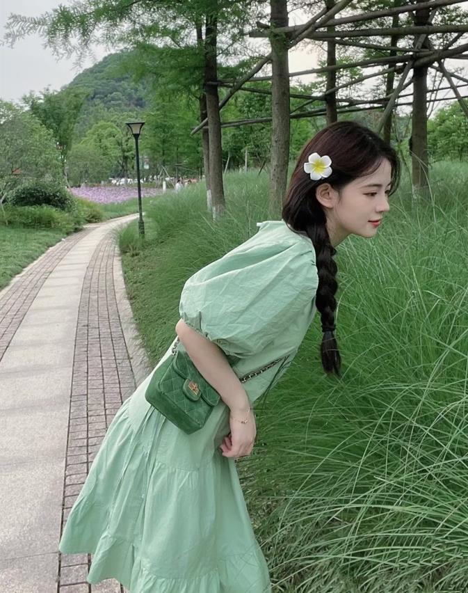 夏天就是要好好利用起“氧氣感”的穿搭,因爲這種着裝實在是太合適了,趁着雨停了,天氣變好了就去戶外走走吧,一條綠色連衣裙,再加上一雙白色運動鞋點綴,休閒又不失元氣,明媚又動人。