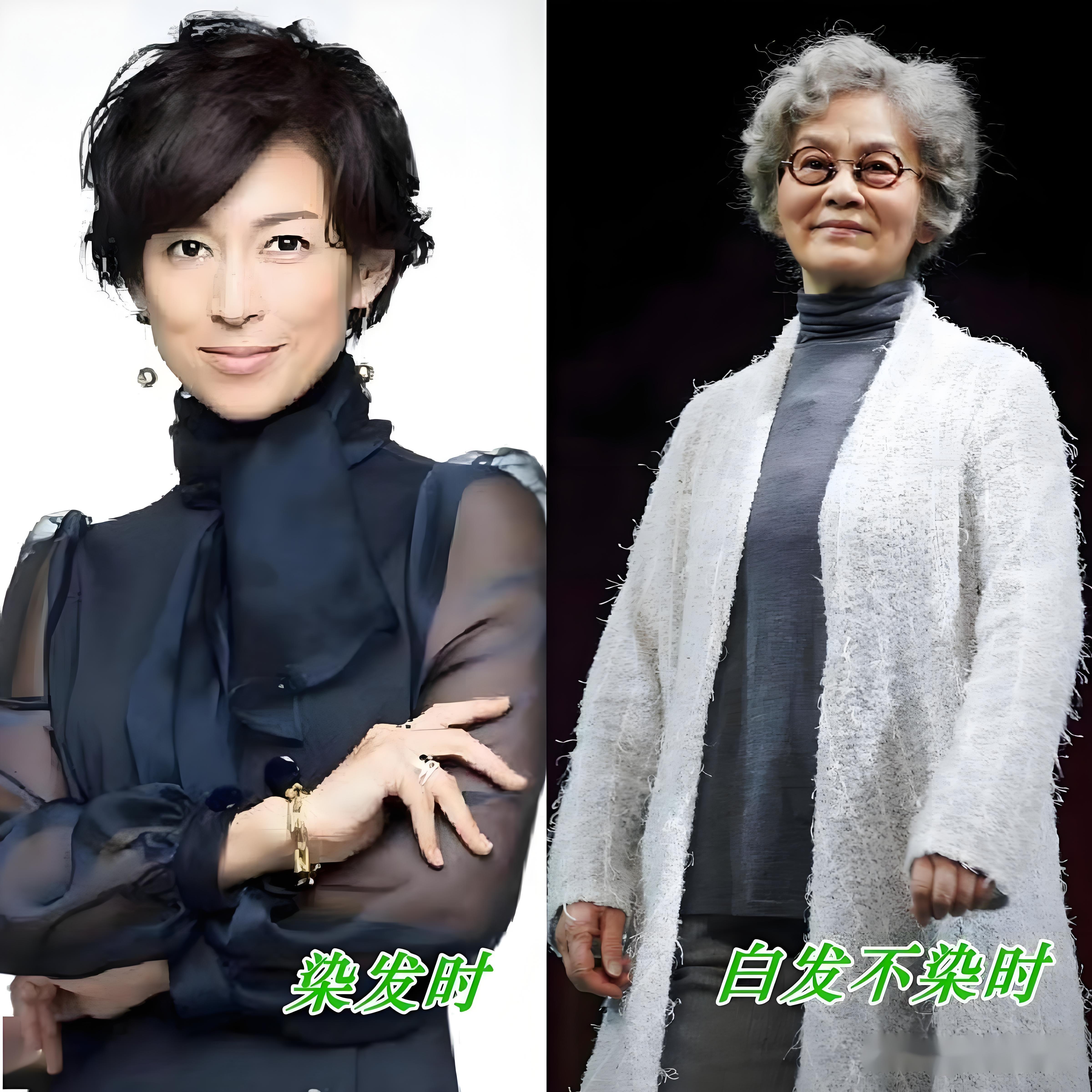 黑髮反而顯得沉悶、顯得整個人有點老氣、氣色也不是很好。微卷的白髮,雖然帶着年齡的痕跡,卻也更加從容知性。整體是一種嫺靜、自然的端莊之美。