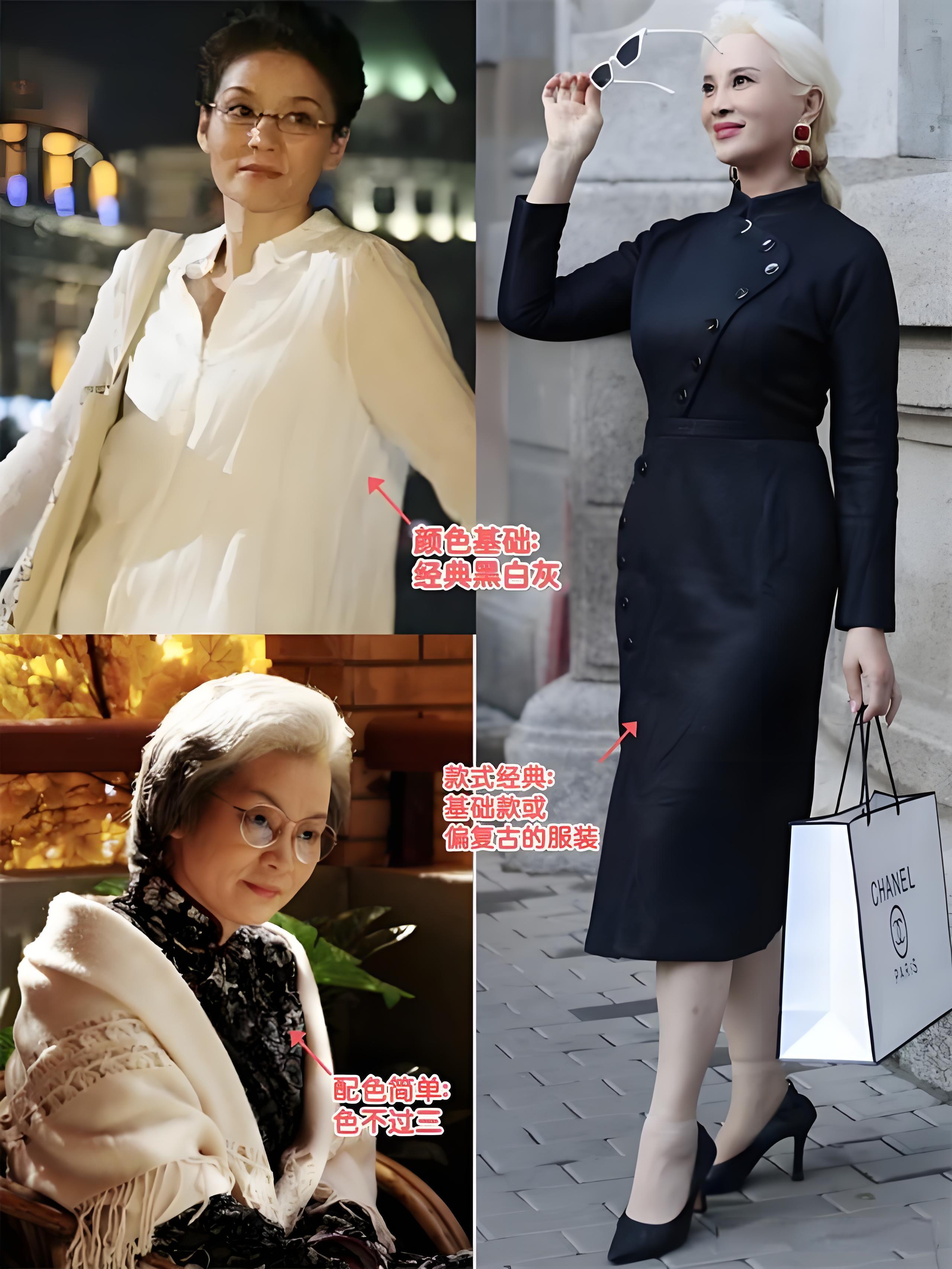 衣越素、人越貴,上了年紀就不要把自己打扮的花裏胡哨了。花紅柳綠的顏色,穿起來太浮誇了些。