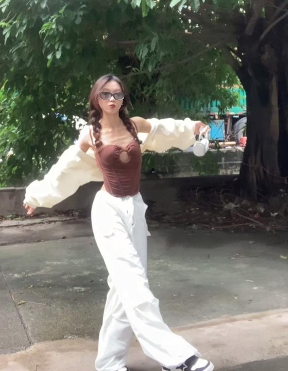 白色和棕色的搭配,實在是太顯高級和好看了,這一套虞書欣的同款穿搭,喜歡的姐妹們就學起來吧!棕色的背心,加上白色的上衣和褲子,50%的白色,讓你的造型配色看起來更乾淨清爽了。