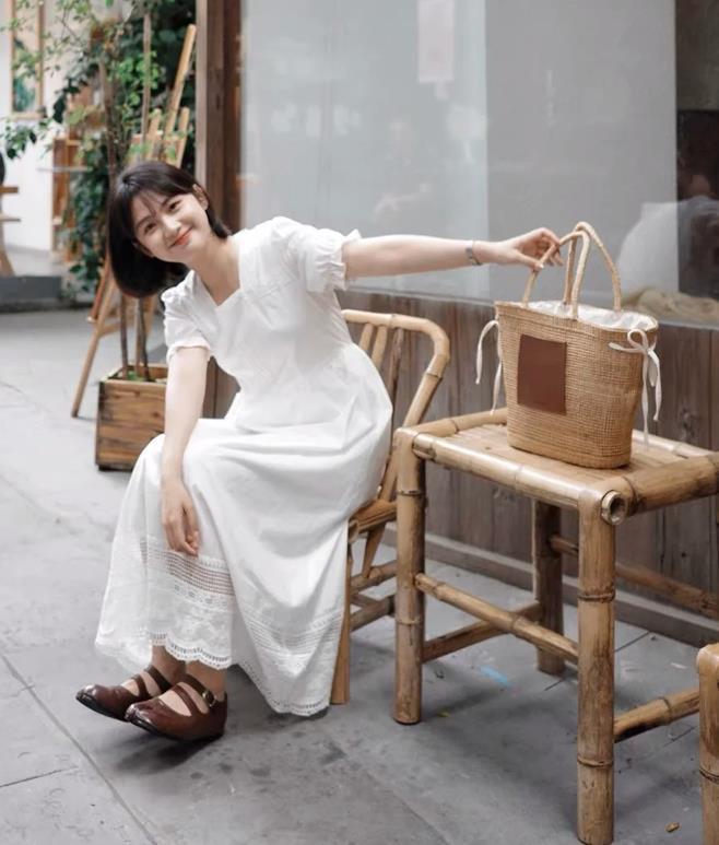 若是不想在搭配上花費那麼多時間的話,夏天出門,直接選擇一條連衣裙就行了,乾淨的白色連衣裙,搭配棕色瑪麗珍單鞋,真的太顯溫柔和好看了。無論是去約會,還是逛街,這一套都很合適。