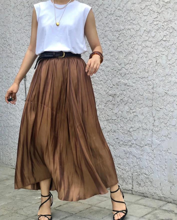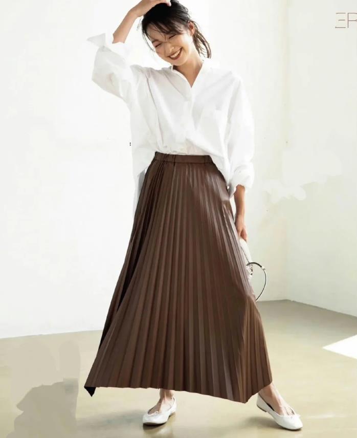 到了假期,自然要好好計劃一下出門遊玩的事宜了,白棕的配色,看着就非常時髦和高級,這樣的配色真的無法拒絕啊。基礎款白色t恤,寬鬆的版型,很藏肉顯瘦,下身一條棕色半身短裙,清爽涼快,又輕鬆打造出高挑感。