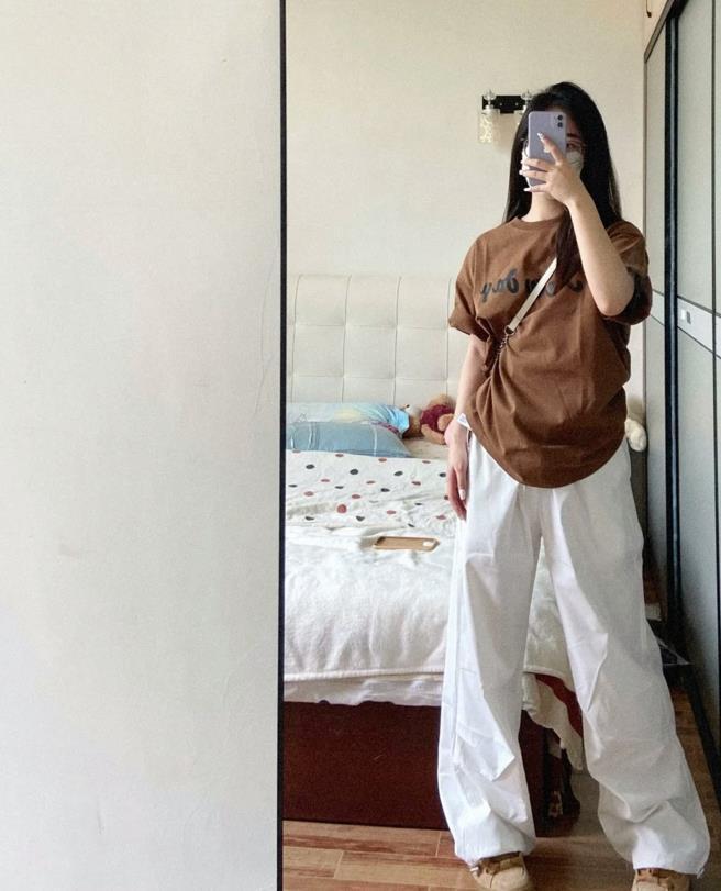 白色和棕色的搭配,真的是絕了,如果你膚色比較白皙的話,可以試着爲自己選擇一件棕色的上衣來穿,這種顏色自帶一種復古氣息。棕色短袖t恤+白色休閒長褲,一整套都是寬鬆的,輕鬆打造出你想要的鬆弛感。