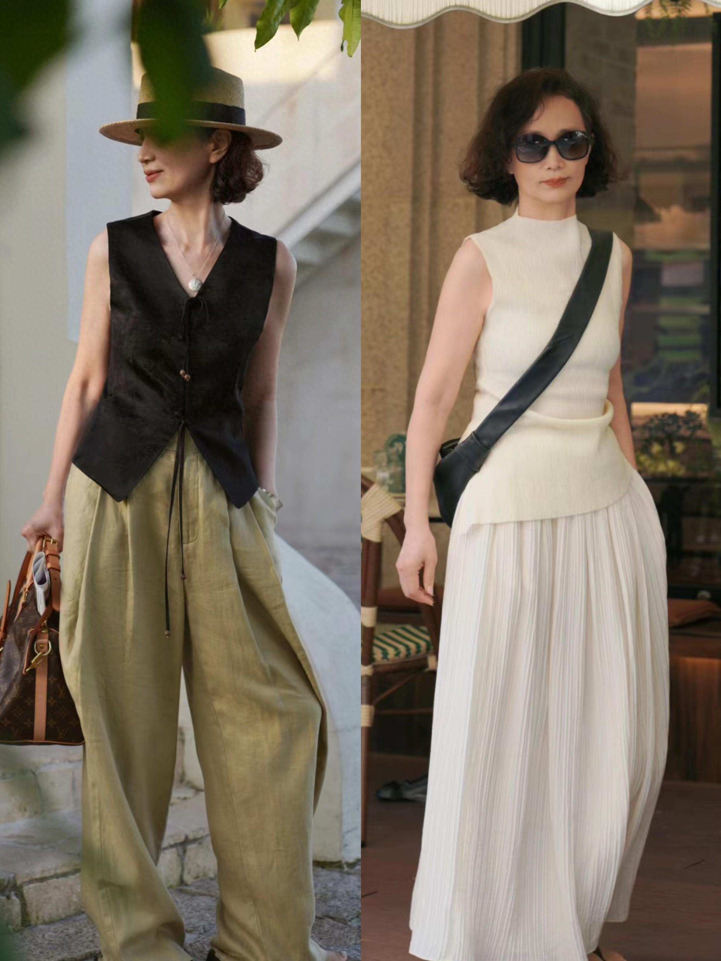 度假風、休閒風、出街風?這樣搭穿搭,真的是隨性又自在。有一種不懼世俗的美,誰說上了年紀不能穿吊帶呀。