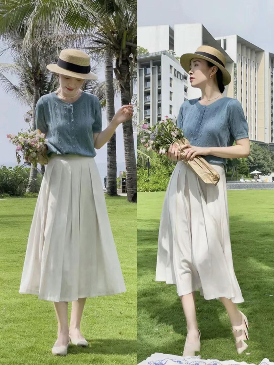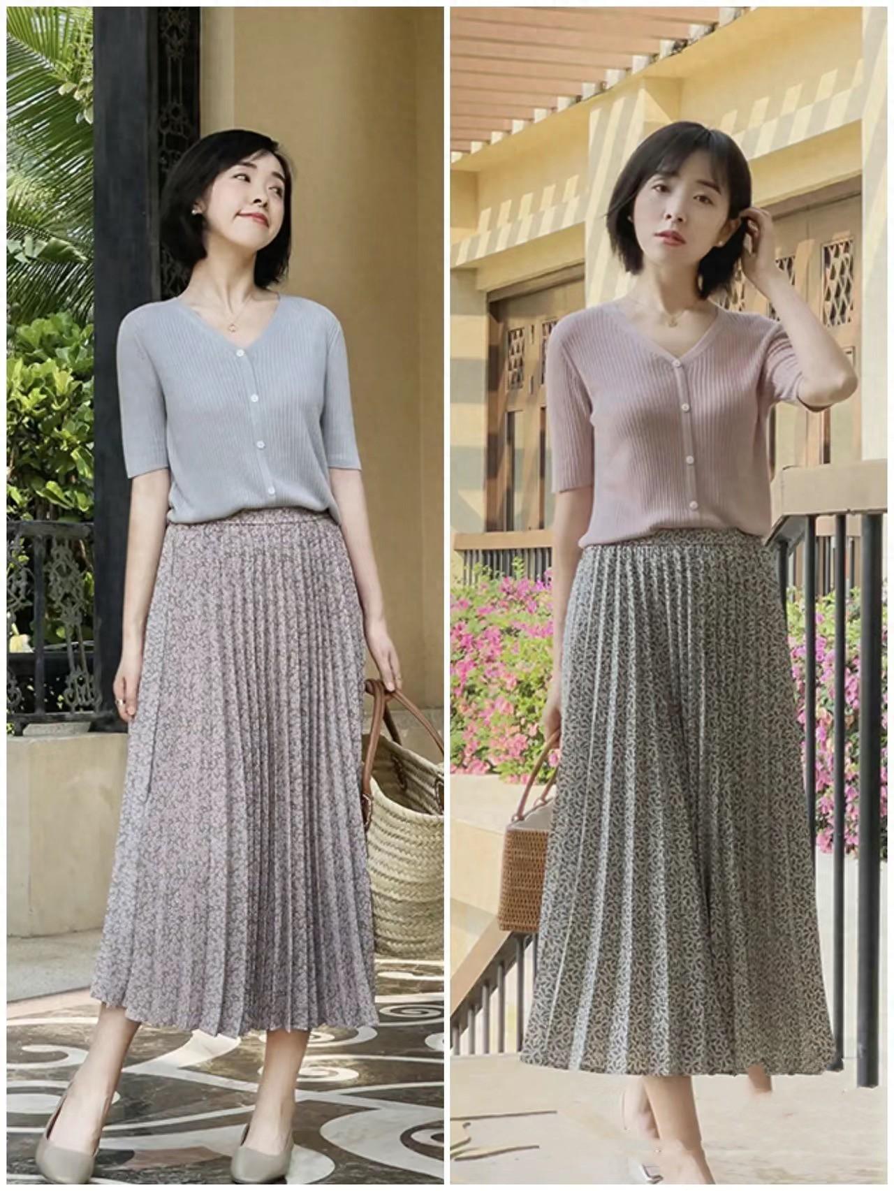 如果想具備更強的包容性,我們搭配赫本裙的時候,儘量選擇大百褶的剪裁。高腰的百褶半身裙,遮蓋膝蓋線條、穿起來也更加輕盈顯瘦。