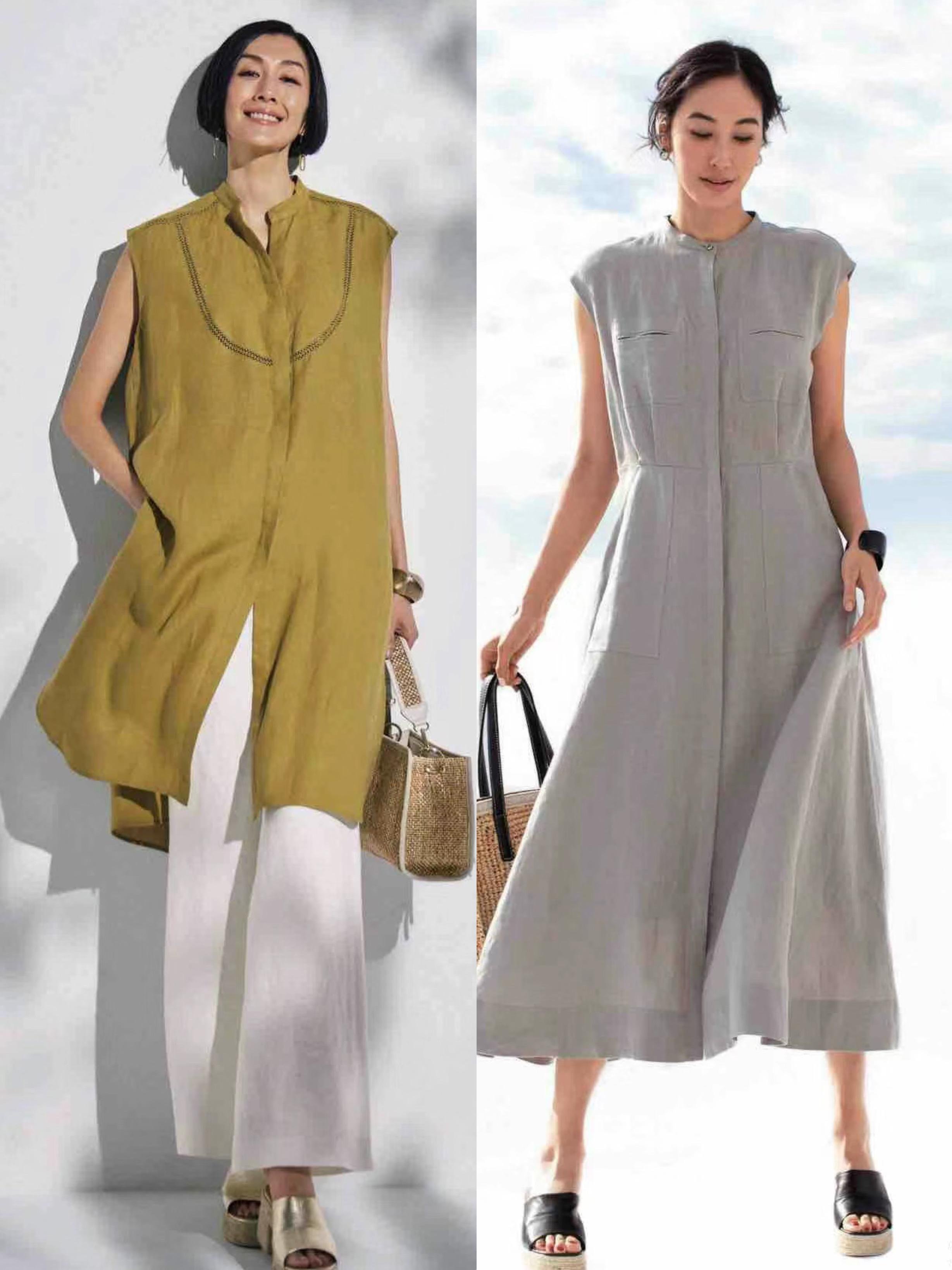五六十歲的女人,雖然不容易駕馭緊身的服裝。但我們可以嘗試帶有寬鬆度、且視覺收腰剪裁的連衣裙、或者上衣,不僅更利落、也不會顯得邋遢。
