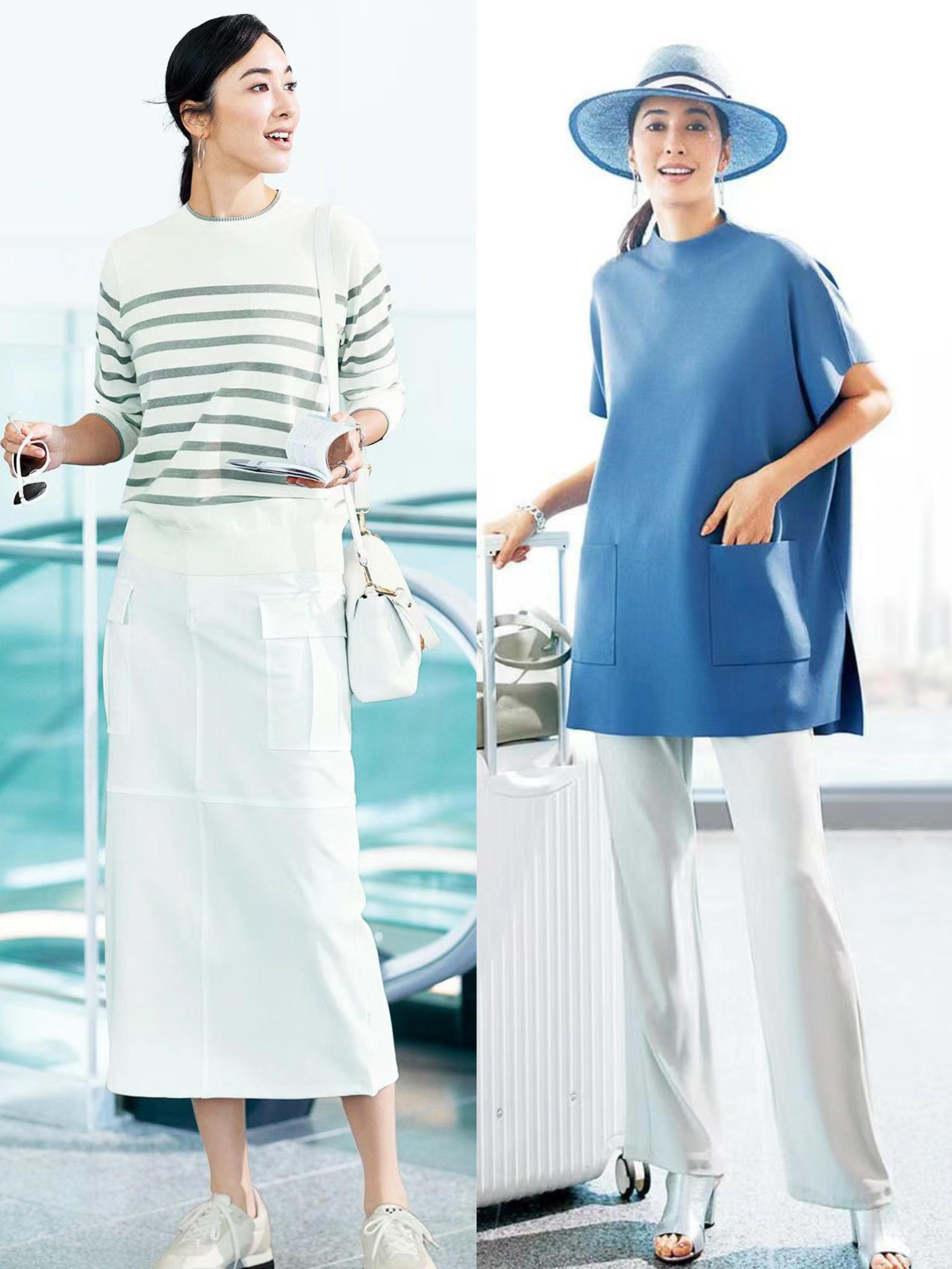 小個子、身材微胖、都可以通過比例感來修飾。比如條紋捏褶的開叉裙+縱向捏褶的九分褲,就更加輕盈顯瘦、也顯得身材高挑。