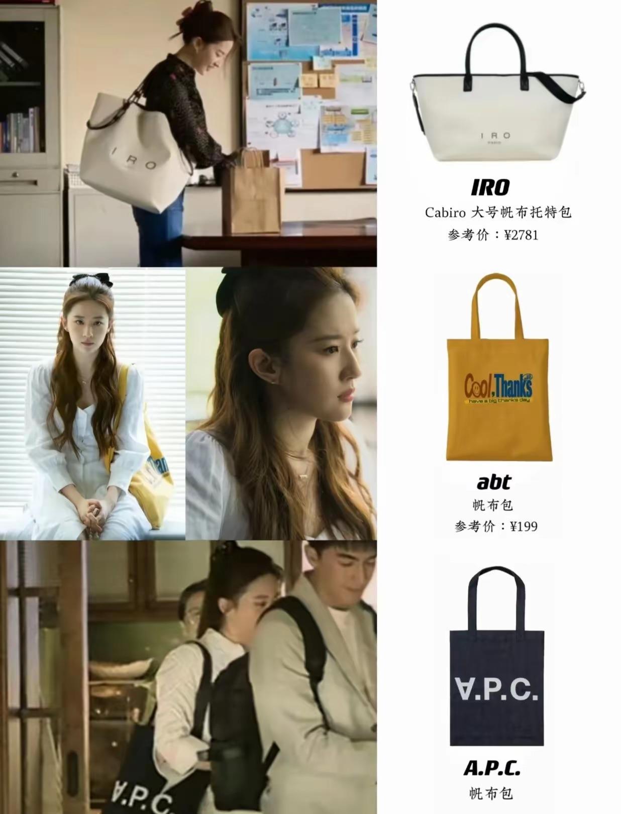 帆布包,總是相對平價一些。平民女孩想要get劉亦菲同款包袋,帆布包就是最好的切入點。