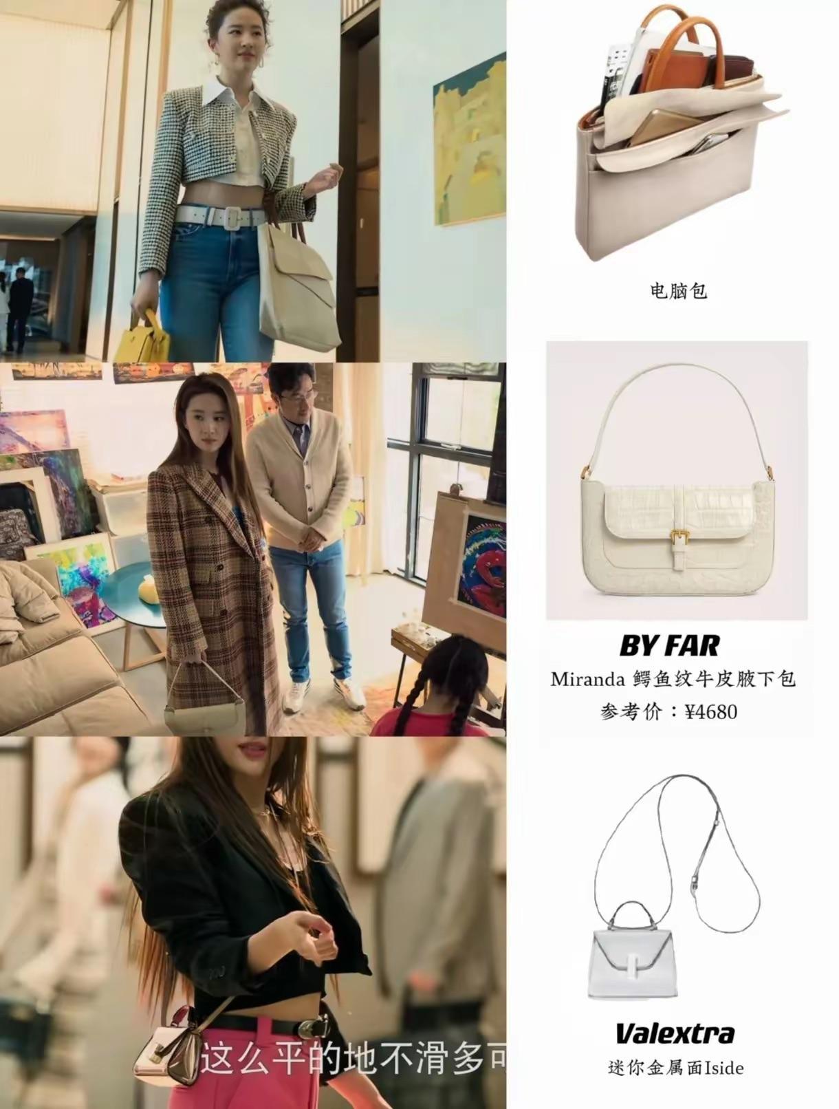 電腦包、迷你金屬包,劉亦菲在劇中也曾背過,多層的電腦包,看着就很實用。迷你金屬包,放個手機、證件也很方便。