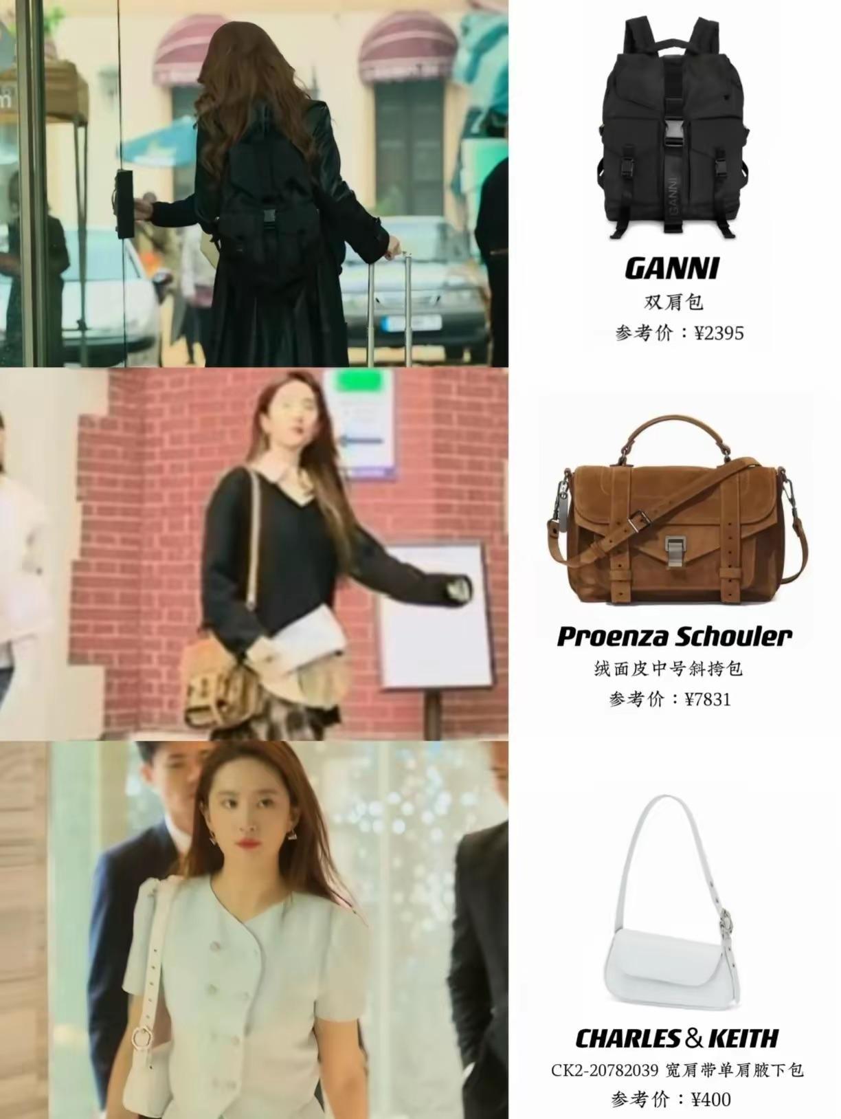 可以看出劉亦菲劇中的包包也是超級多,當然價值跨度很大。從幾十到幾百、幾千到幾萬,各種價位都可以看到,大家在get同款的時候也可以量力而行。