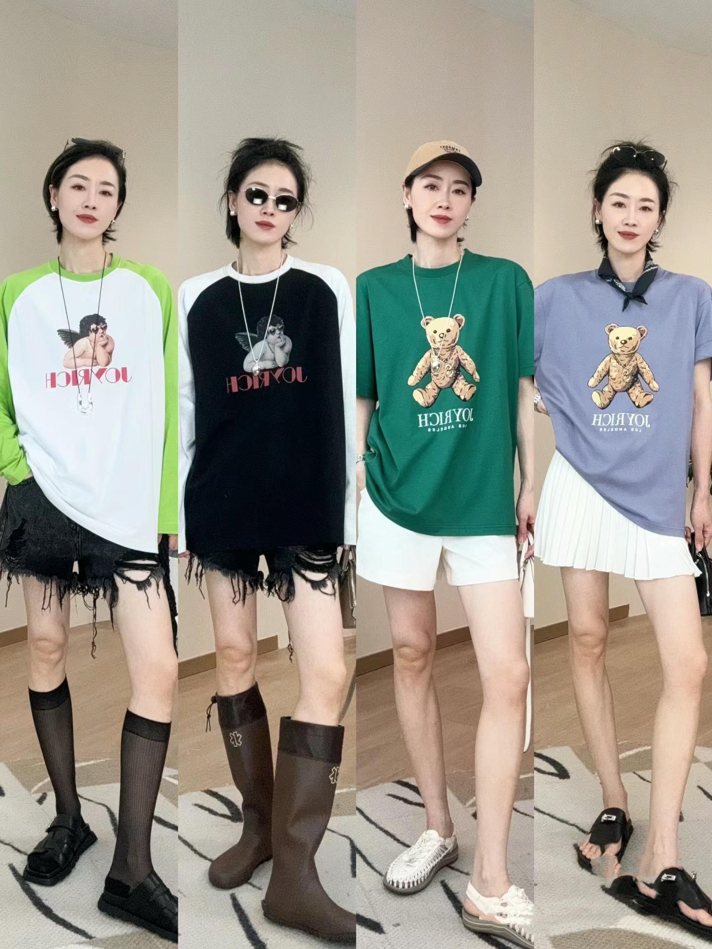 T恤的款式,多種多樣。圓領的、V領的、方領的。純色的、印花的、條紋的。寬鬆的、修身的、緊身的。短款的、常規的、中長款的。純棉的、聚酯纖維的、精梳棉的,應有盡有。