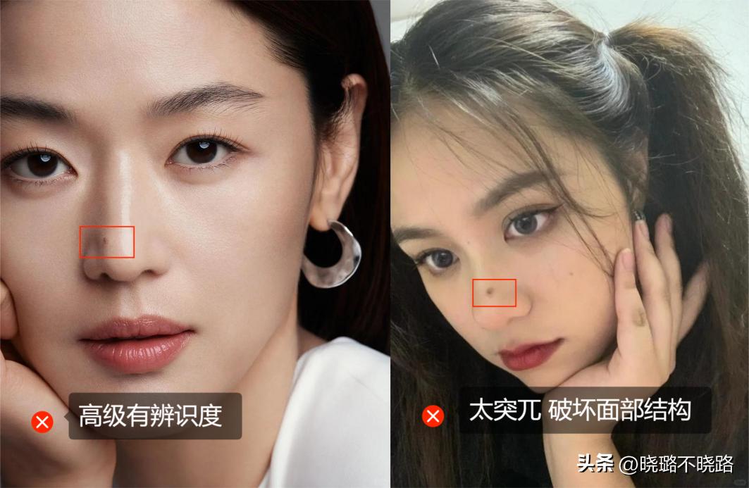 鼻樑旁邊的痣會成爲你面部中心的點綴焦點,可以很從容的去修飾出你的五官立體感,甚至說很多時候可以形成自然的陰影特徵,幫助你去弱化鼻影的畫法,讓你的五官立體感更加明顯,而且也省去了很多化妝的技巧。