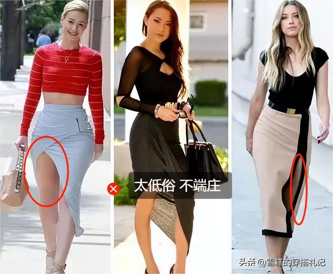 任何流行的元素一出來,其實都是具有分寸感的,比如開叉裙的設計,稍微開叉可以更多的讓長裙露腿,但是高開叉的款式就過了。高開叉,無論是開在側面還是後面,都會增加你穿裙子走光的風險,也不適合中年女人去設計端莊穩重感。