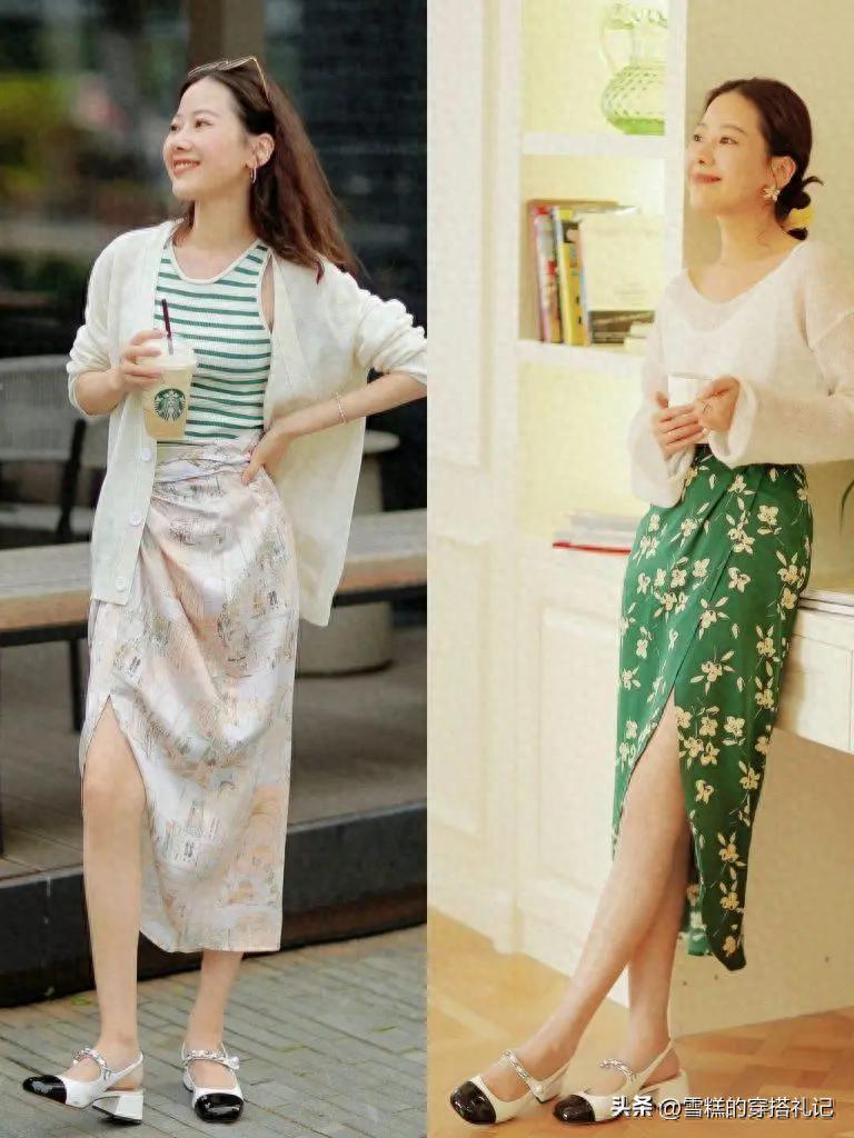 半身裙的穿搭以及選擇是最豐富的,通過替換不同款式的上衣,一條裙子是可以穿出不同風格。在實踐的過程當中,我們最欣賞三木媽媽的雪紡半身百褶裙穿法,無論是搭配披肩,還是襯衫,或者是背心,雪紡裙展示出來的縱向曲線都能夠維護身高,小個子的女人特別適合。