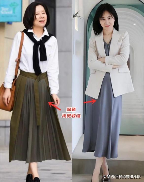 上緊下松的百褶裙主要是在腰線的部分,收緊在裙襬的部分,放寬一條裙子就可以拿,你也整體穿搭的上窄下寬的對比效果,我們又怎麼能夠捨棄得了這種優越設計感呢?而且百褶裙好穿的設計點在於,中年女人選擇過膝的長度,對於身材的包容感特別強