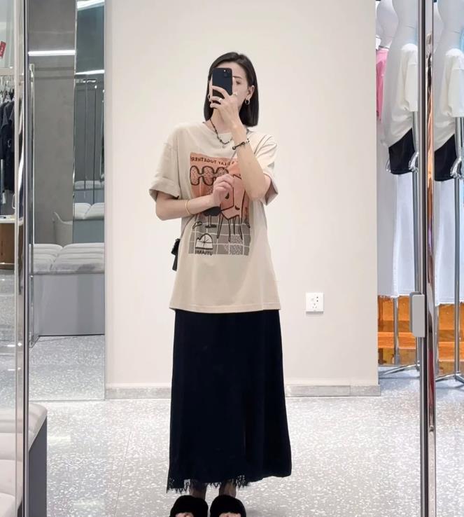 T恤+半身裙,時尚又休閒,這樣穿的女人最美!