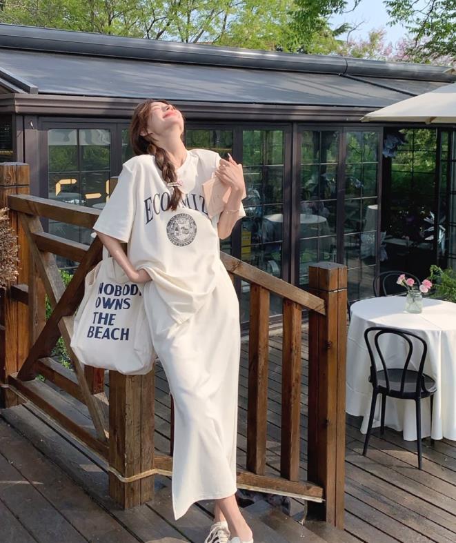 微胖女生這麼穿真的太顯瘦舒適了,黑白配,是永遠都不會出錯的配色之一,喜歡這種寬鬆隨性的搭配,很舒服顯瘦。黑色長款t恤,可藏肉了,和白色的半身長裙相配,下身比例不好看,或者是胯寬的身材,都可以輕鬆遮掩起來,鞋子選擇黑色的吧,可以與t恤進行呼應。