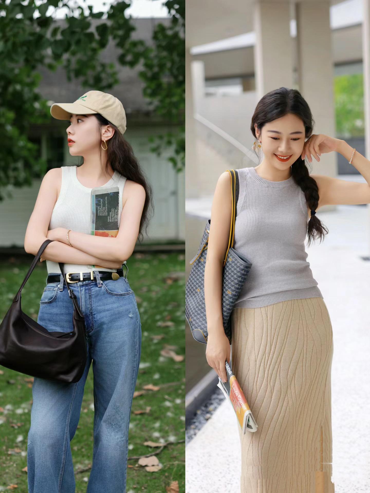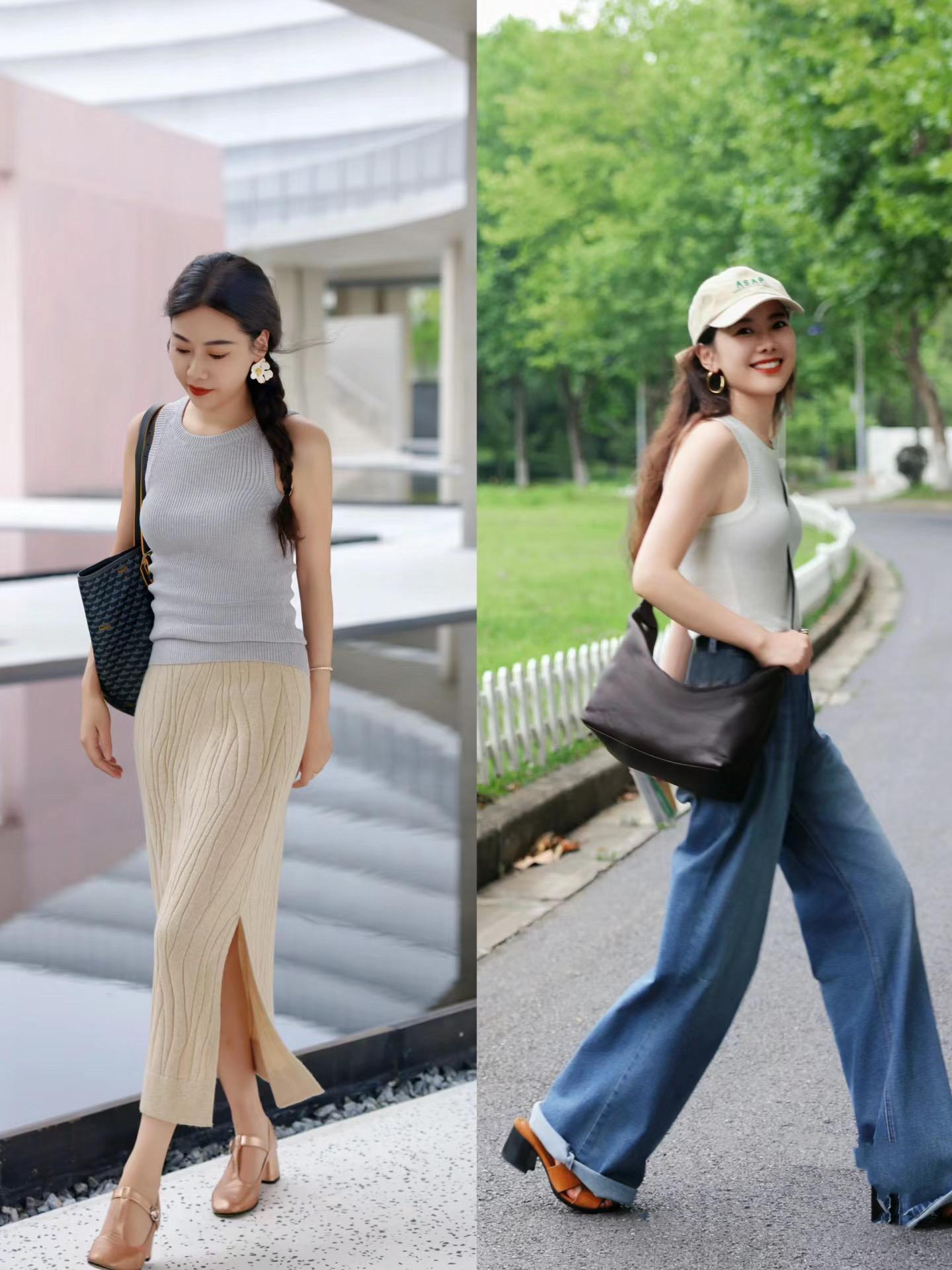 基礎款的單品,真的是百看不厭。越是長相普通的女人,越應該多嘗試基礎款的單品。修身的吊帶背心、高腰的直筒褲、修身的半身裙,都很容易搭配。