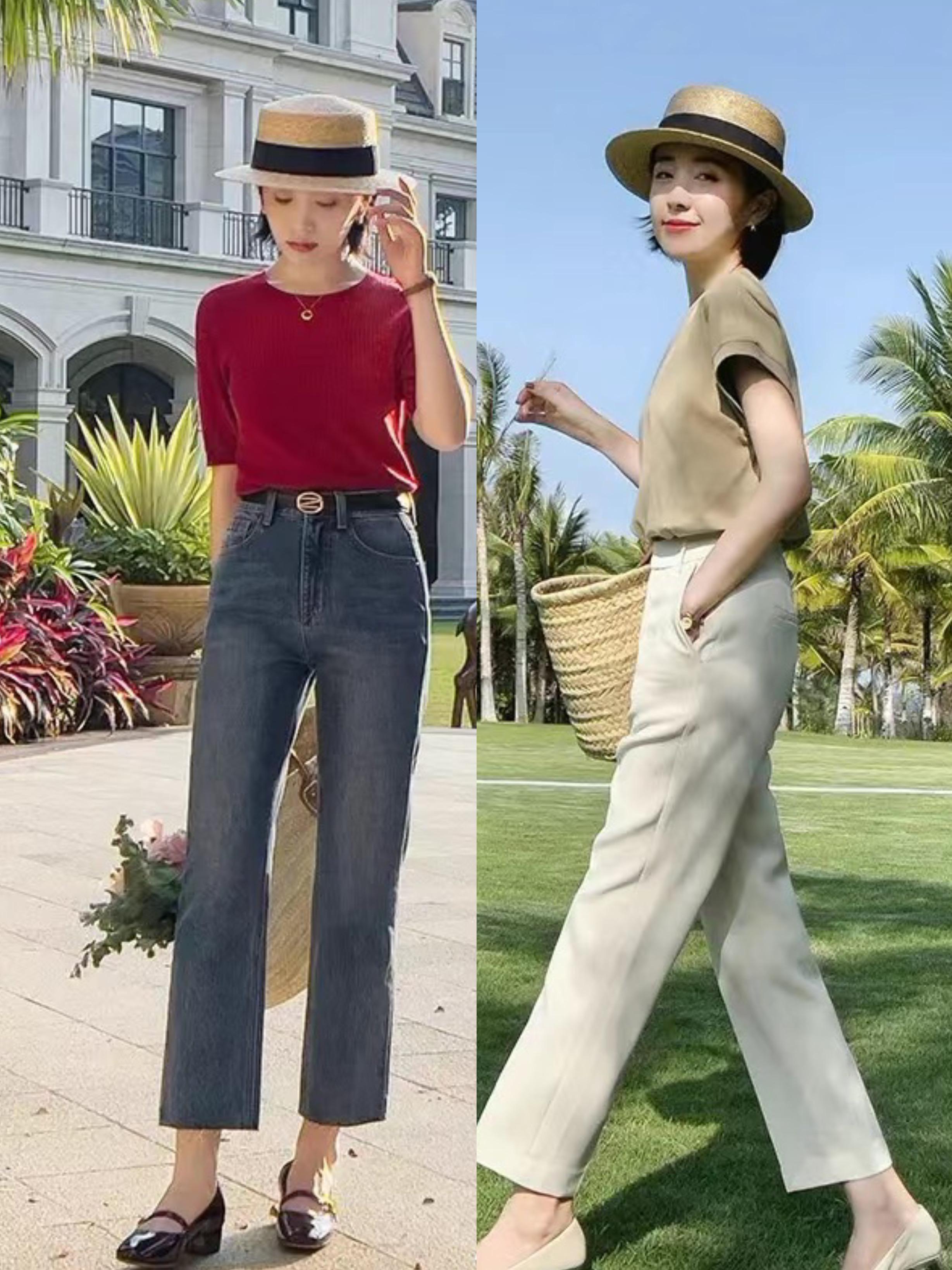 及踝褲+低跟鞋,雖然修飾腿型、清爽、顯高,但如果上衣搭配不對,也會拉低整體的時尚品味。