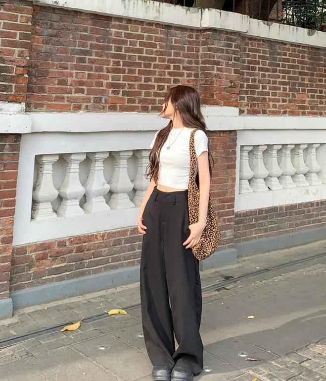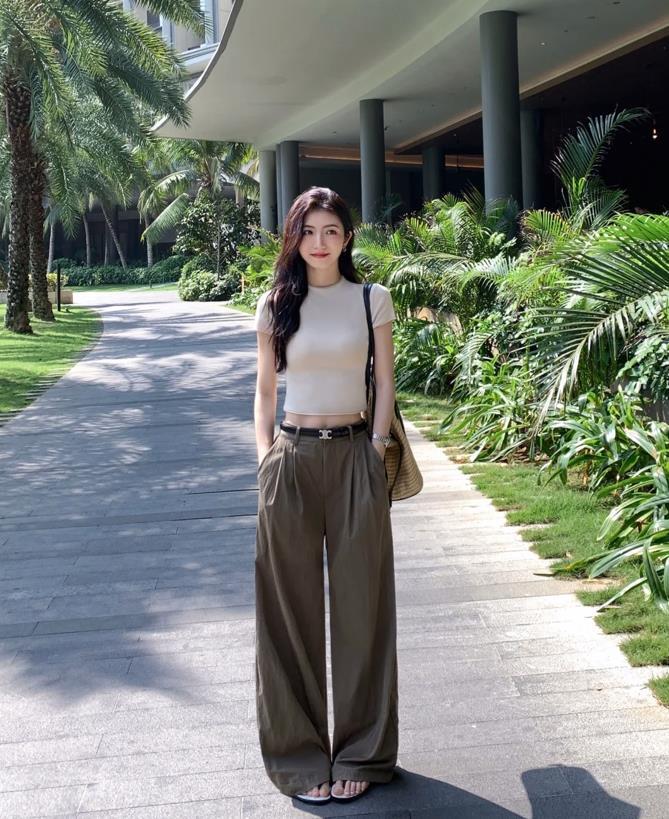 今年很流行正肩短袖t恤,穿起來可是很顯高挑的,也能輕鬆拉長腿部線條,在視覺上呈現出高挑感。修身版型的t恤,與寬鬆闊腿褲組合一起,上緊下松的搭配,完美修飾了整個身材比例,簡約又不失氣質的一套,可上班通勤,也可逛街約會。