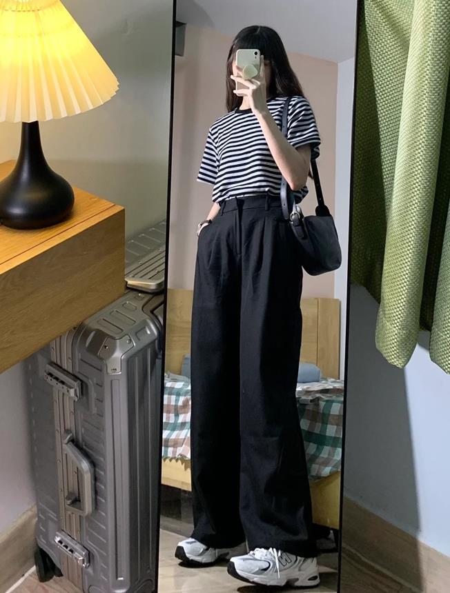 真的太愛這種舒服又好看的褲子了,比起傳統的西裝褲,這種版型休閒的西裝褲穿起來也太隨性和自在了,對身材一點違和感都沒有,胖瘦皆可以穿。簡單選一件白色t恤來配,很舒適自在又好看。