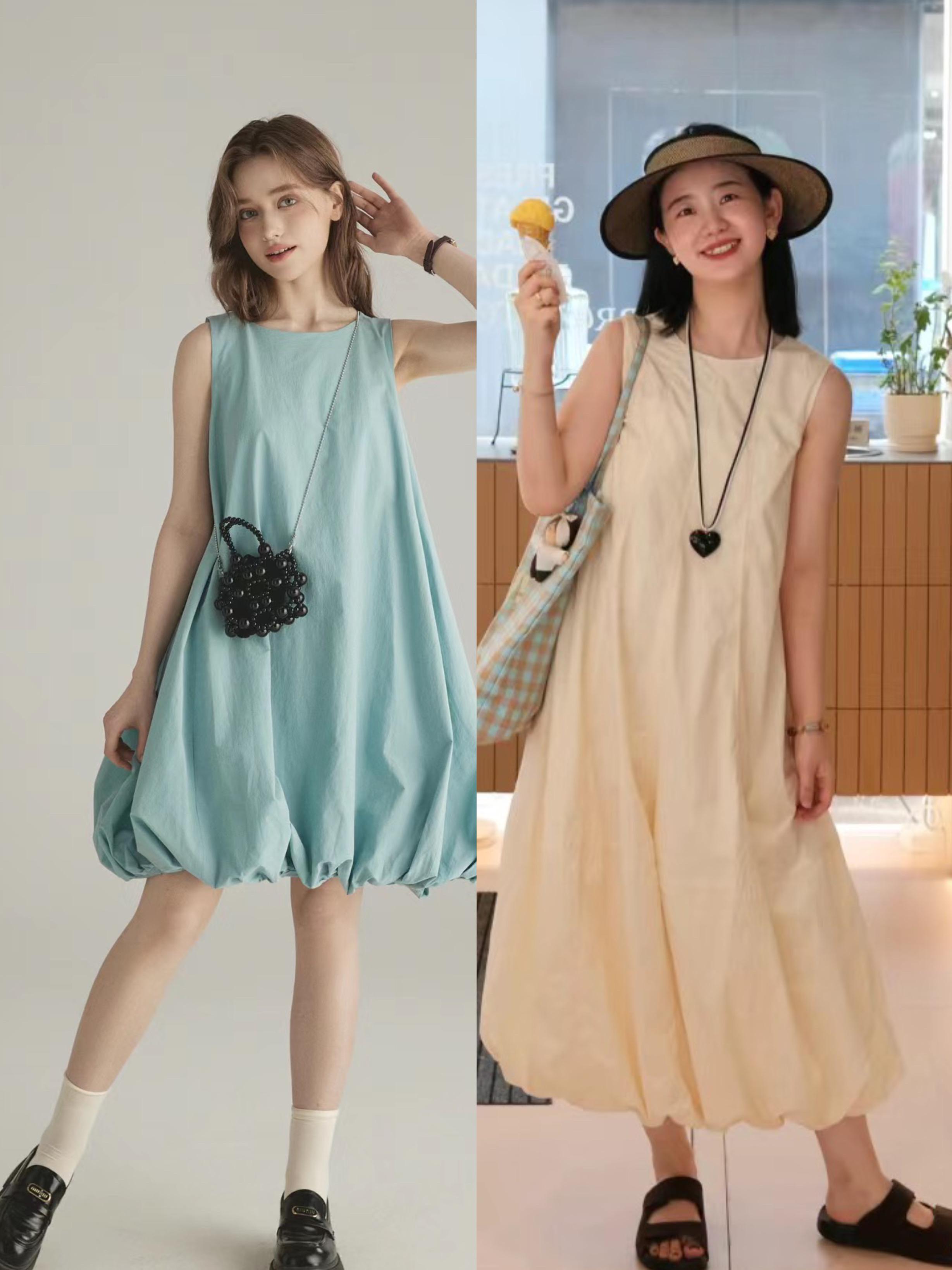 這種花苞連衣裙,更加適合梨形身材。如果你也是上窄下寬的身材,可以多穿着這種清爽遮肉的花苞連衣裙。