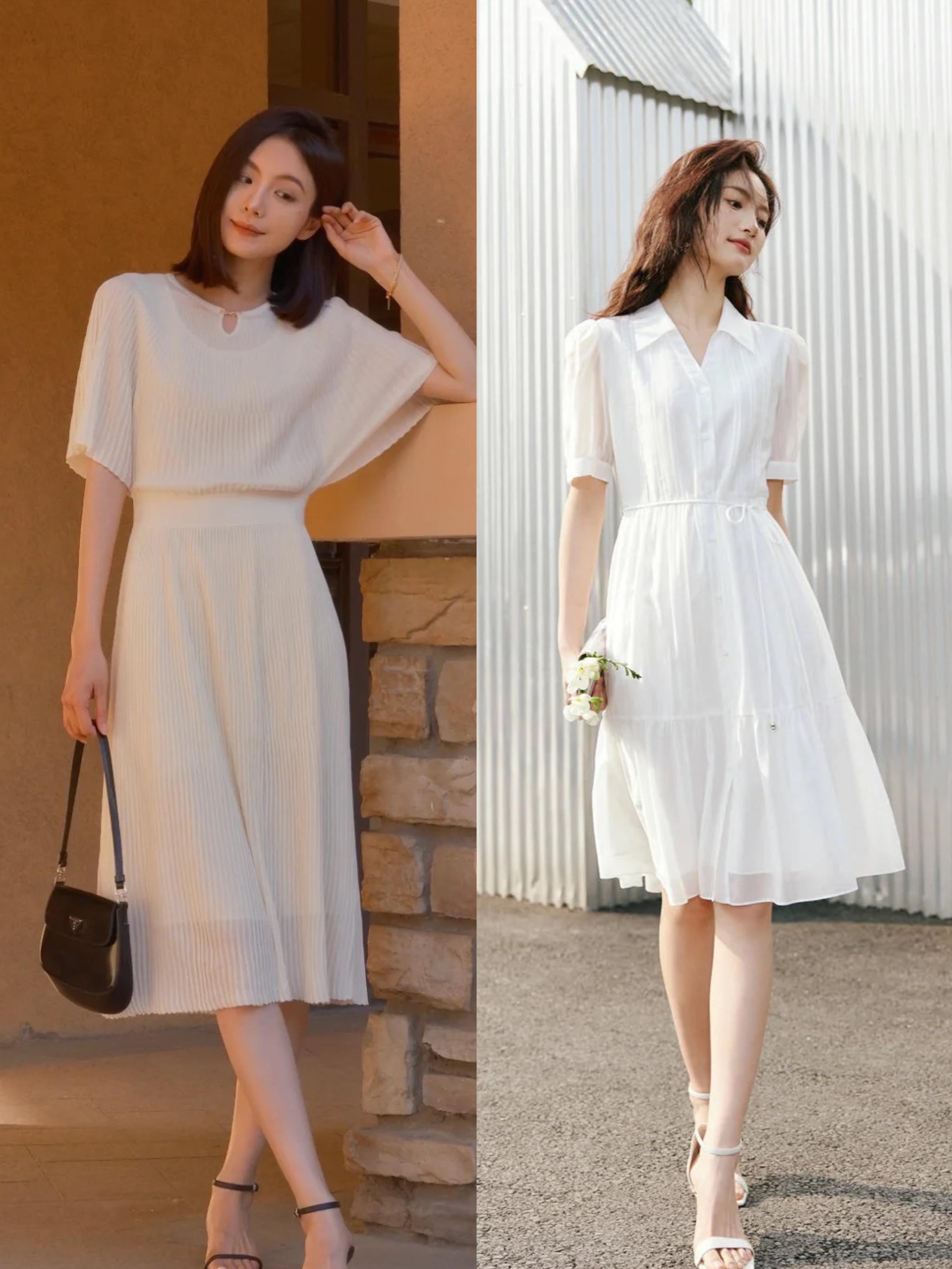 哪怕是一條純白色的連衣裙,只需要注意領口、腰身的設計,就可以穿得更加高級迷人。