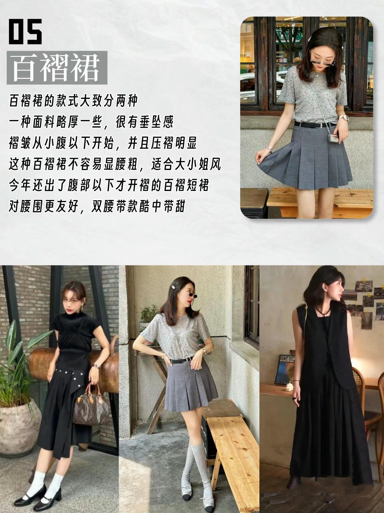 自帶甜美氣質的百褶半身裙,很減齡、也很遮肉。選擇百褶裙的時候,可以參考褶皺的處理位置。