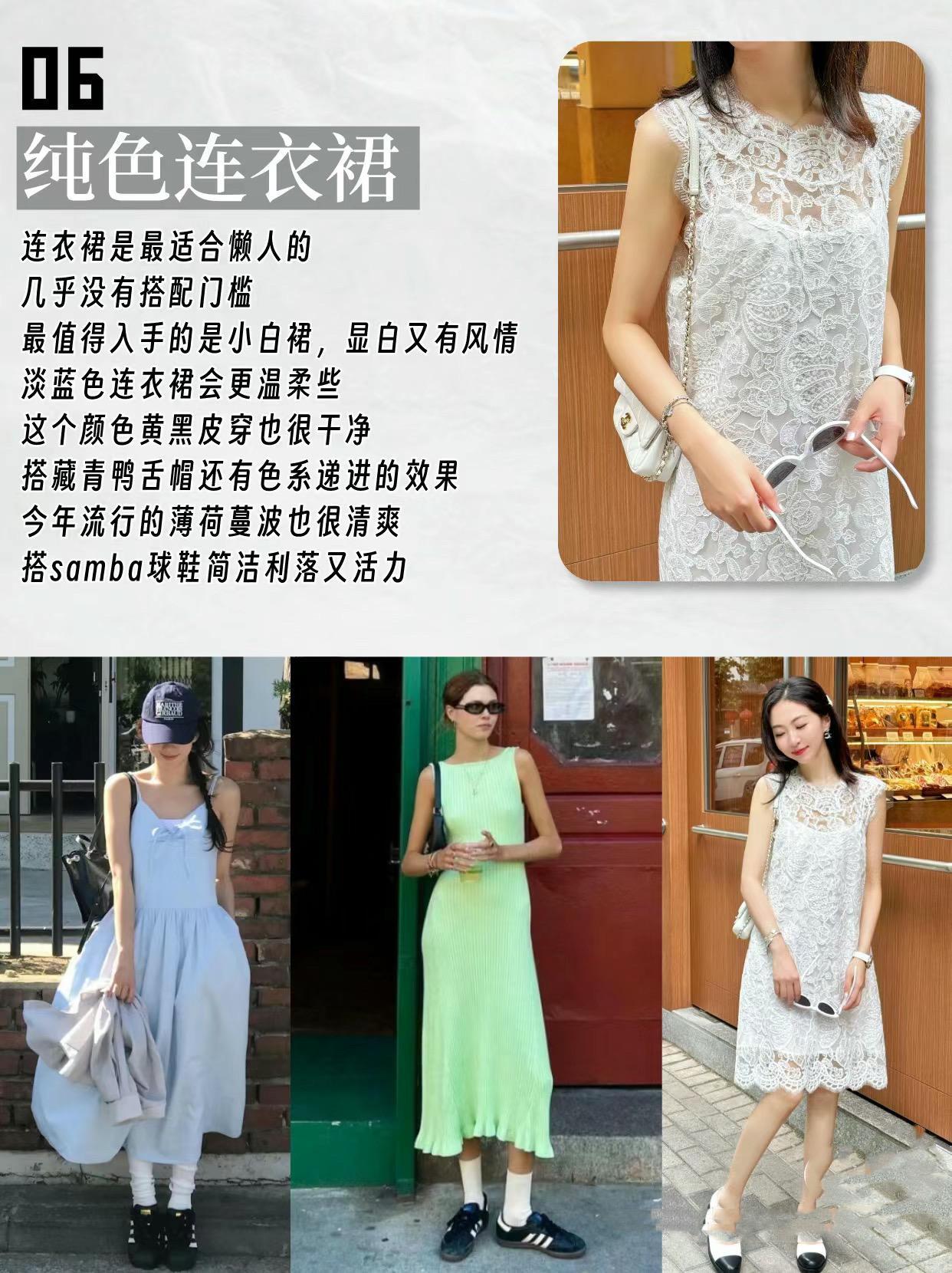 純色連衣裙,就是全身只有一種顏色的連衣裙呀,這種連衣裙不考驗搭配功底,也是懶人必備單品。