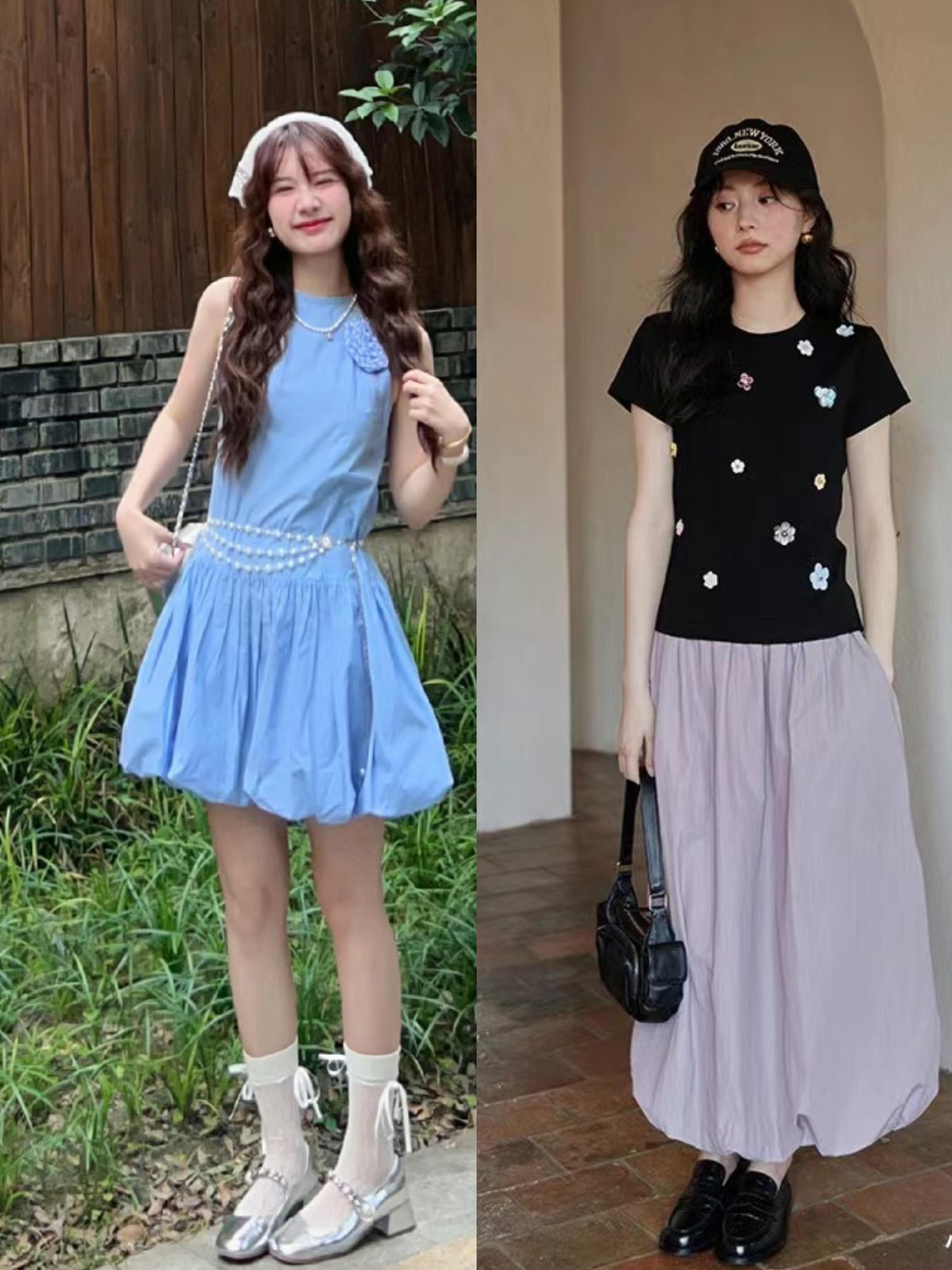 甜心少女最愛的花苞裙,不僅可以選擇短款、還可以選擇長款。不僅有半身裙的款式、還有連衣裙的款式。