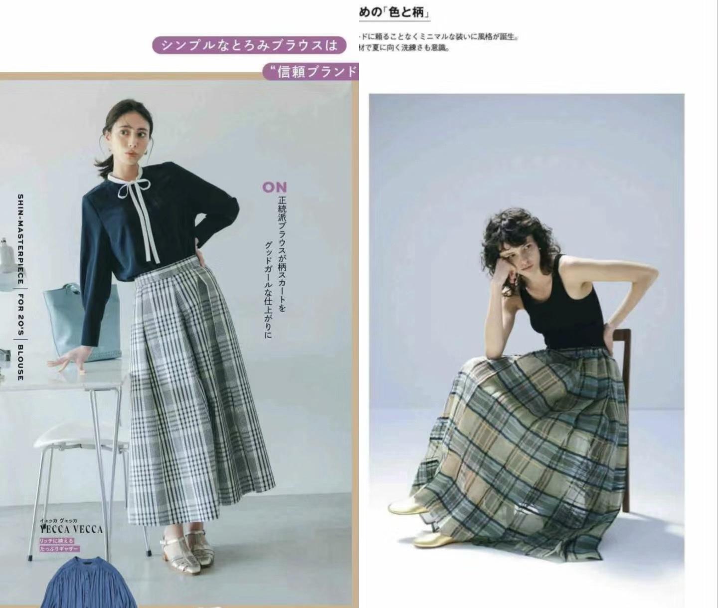 文藝風的格子半身裙,可以選擇大一點的格紋裝飾。格紋元素的修飾,讓我們的穿搭變得清爽又耐看。