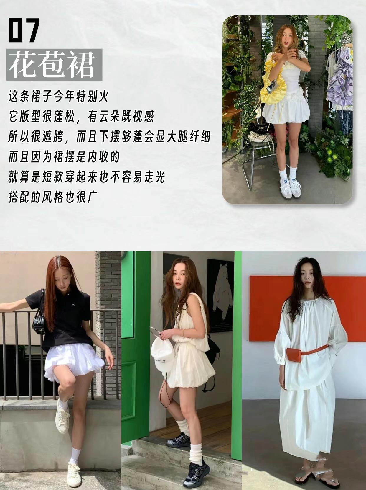 特別火的花苞裙,版型蓬鬆、很可愛也很遮胯,屬於適種特別顯瘦的單品。尤其是足夠蓬大的下襬,可以顯得雙腿更纖細。