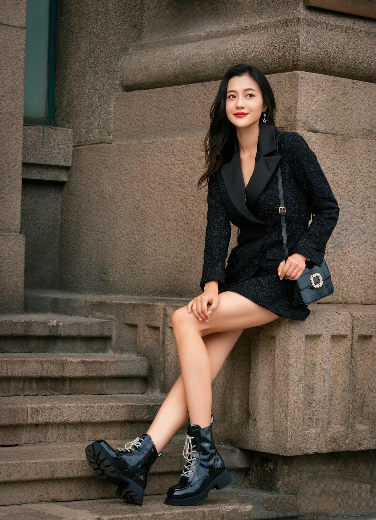 偶爾想要酷一點,就用西裝裙配馬丁靴吧,一身黑色穿搭、實在是太颯了。帶着力量感,更有張力,惹眼又拉風!