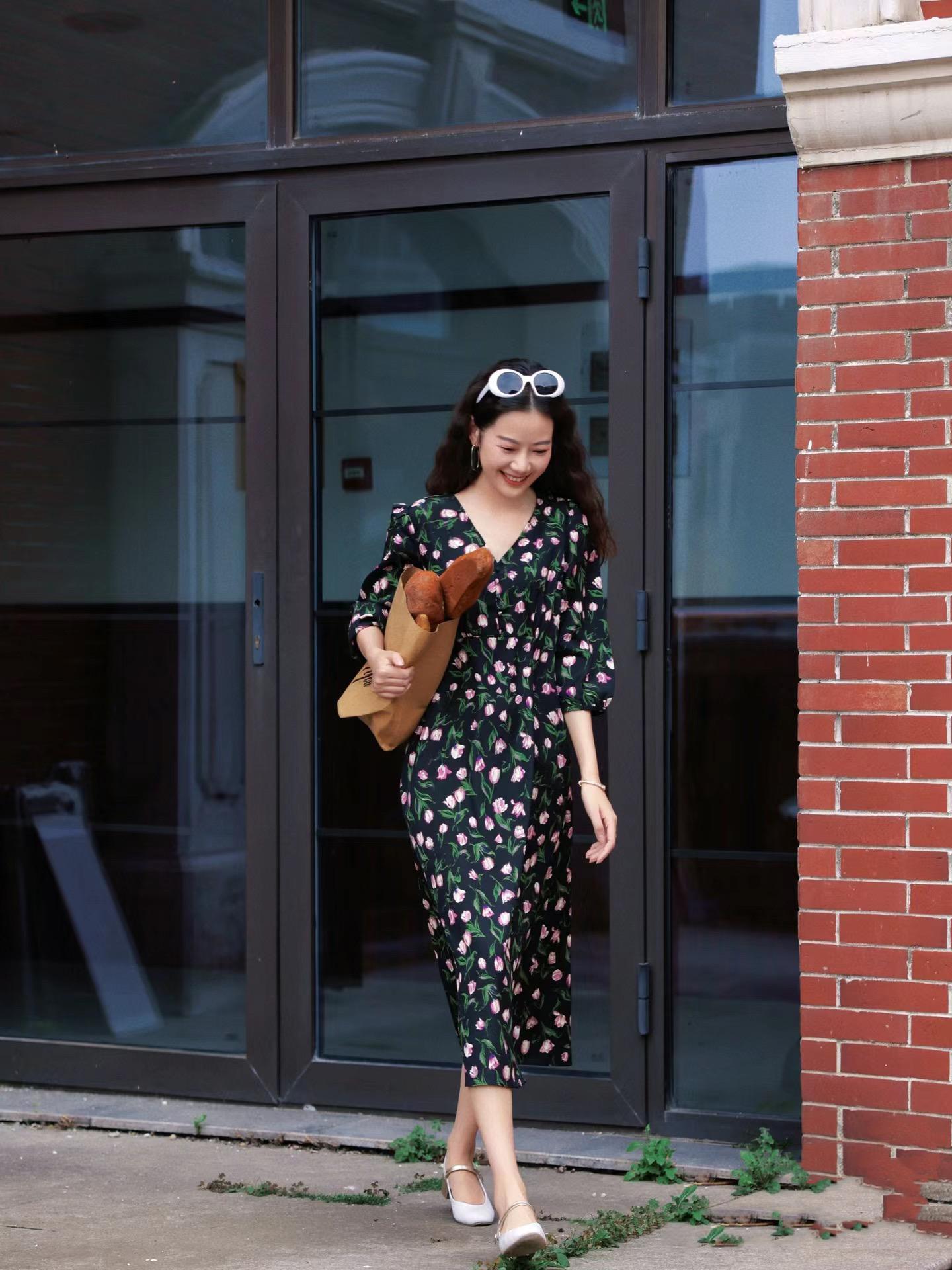 復古雅緻的穿搭,更收到中年女性的喜歡。深色底色的法式茶歇裙,配上粉色印花,更多了幾分溫柔。一雙白色瑪麗珍鞋,讓浪漫的穿搭更爲考究。
