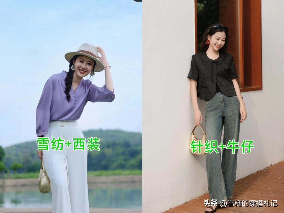 爲了更好地穿出質感,大家可以從整體的面料入手。比如上半身可以選擇柔軟一些的雪紡,緞面等材質進行勾勒,突出整體的纖細感與精緻女人味,下半身配上挺闊的牛仔褲西裝褲,在挺括下裝與柔軟上衣的組合下輕鬆的協調好身形。