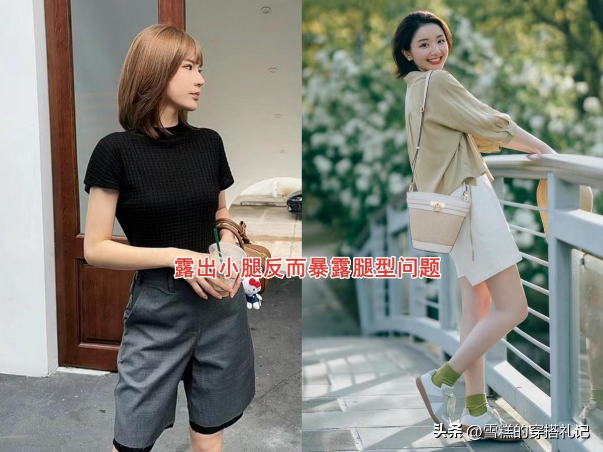 這種腿型的女人千萬不要穿膝蓋以上的超短褲或者是五分短褲,將小腿露出來反而進一步加深了缺點,而且五分短褲還會將腿部五五分,顯得人又矮又胖。