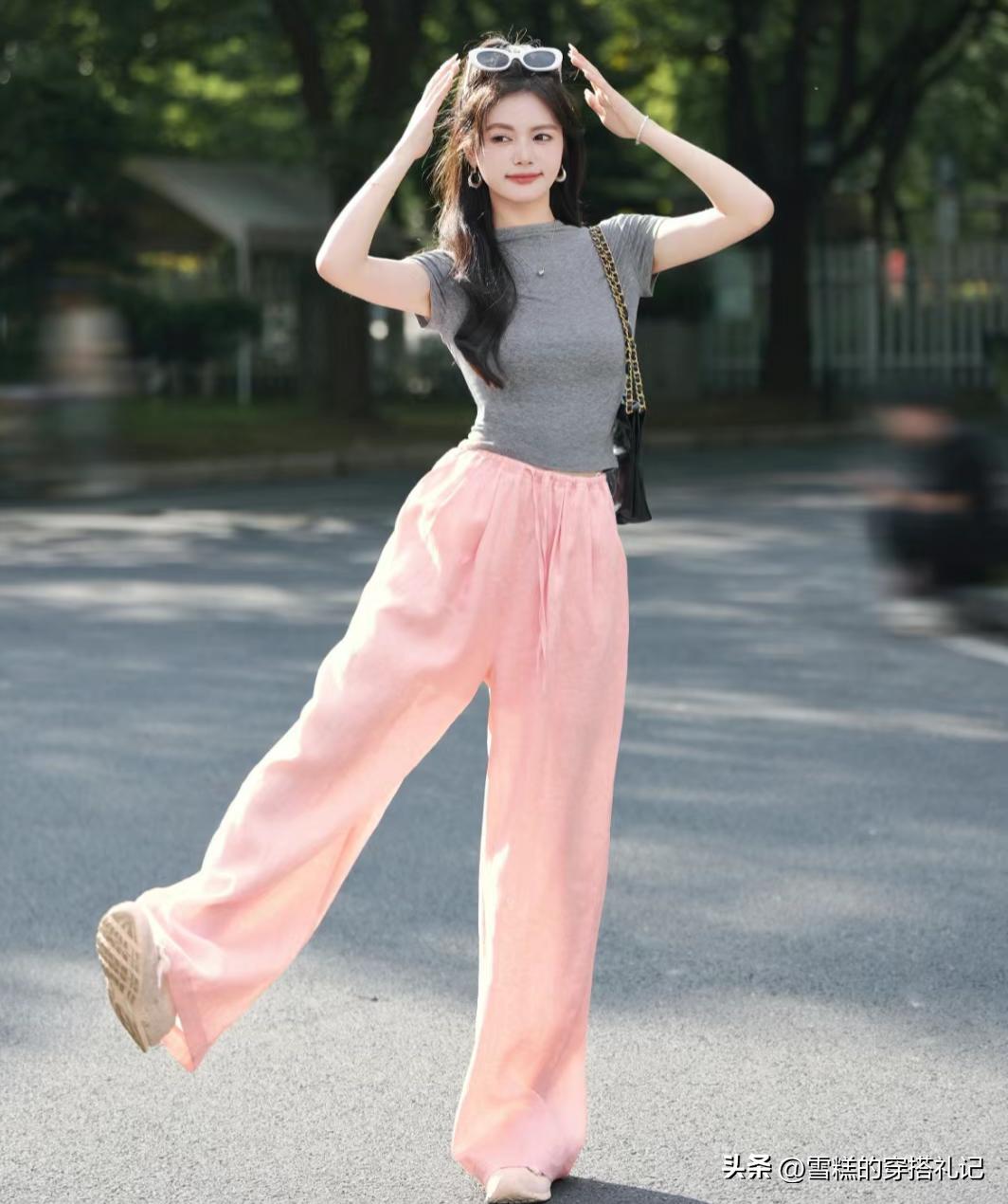 上窄下寬的微喇褲簡直是X型腿的本命神褲,線條的走向完全貼合X型腿可以更好地修飾腿型問題,呈現出輕盈利落的好身材。但是不建議大家選擇太厚的面料,夏天穿難免有種悶熱不透氣的感覺。以輕盈透氣的天絲亞麻或者軟牛仔爲主,輕鬆收穫乾淨清爽。