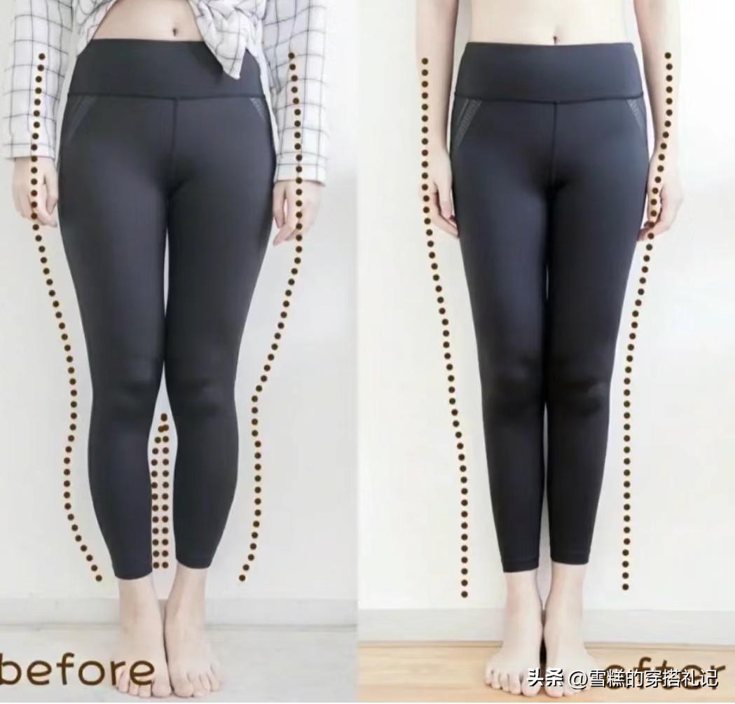 X型腿呈現出來的感覺與O型腿恰恰相反,膝蓋可以完全併攏毫無縫隙,但是胯寬和褲腿的寬度遠遠大於膝蓋位置,無意當中將腿部的重心拉低,顯得人又矮又胖。X型腿一般與後天的走路姿勢坐姿有關,腳部發力不當反而會加劇腿部問題。
