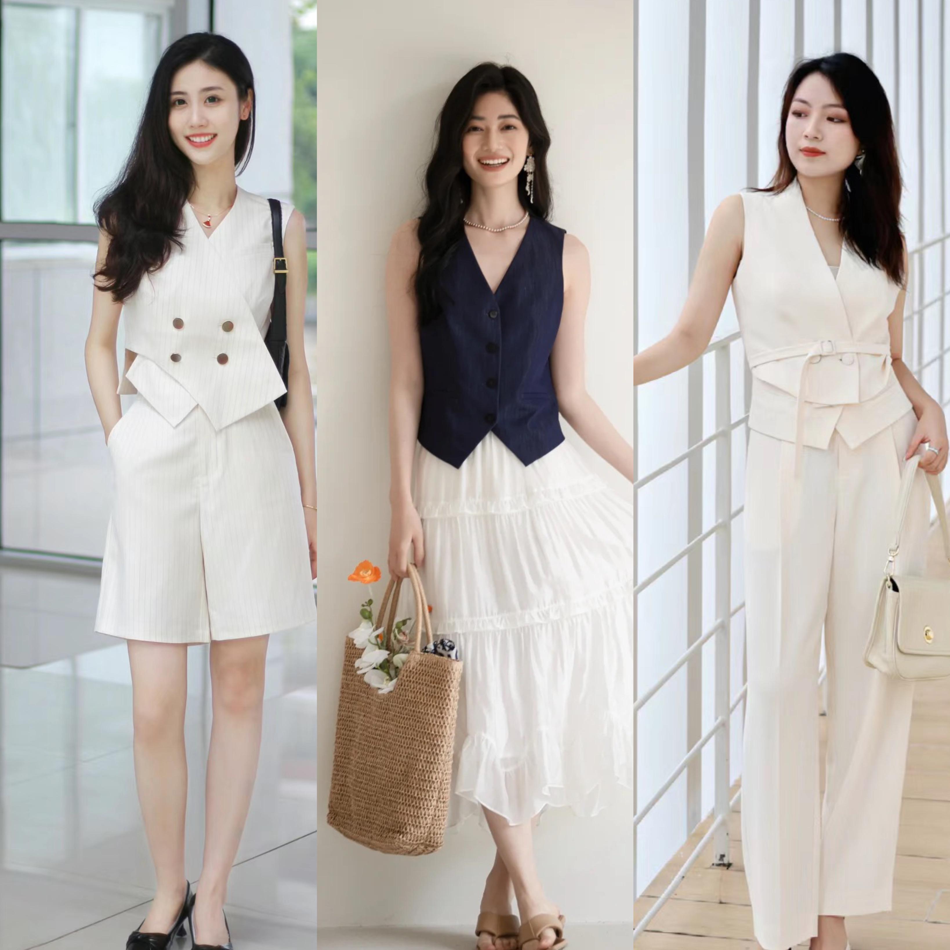 個性剪裁的西裝馬甲,配上雙排扣修飾,透着都市女性的幹練之美。搭配了高腰的西裝短褲,上班通勤、灑脫又大方。