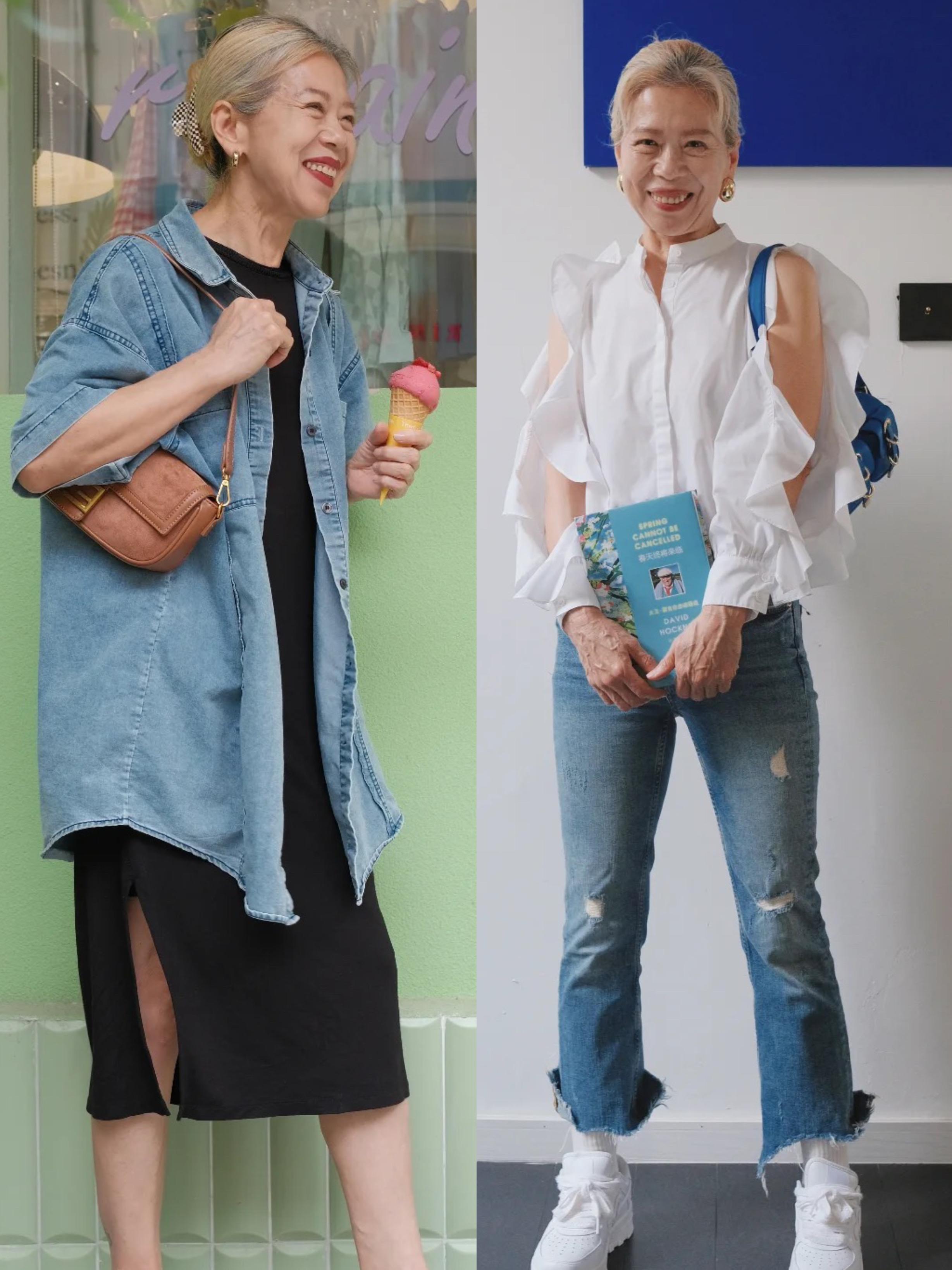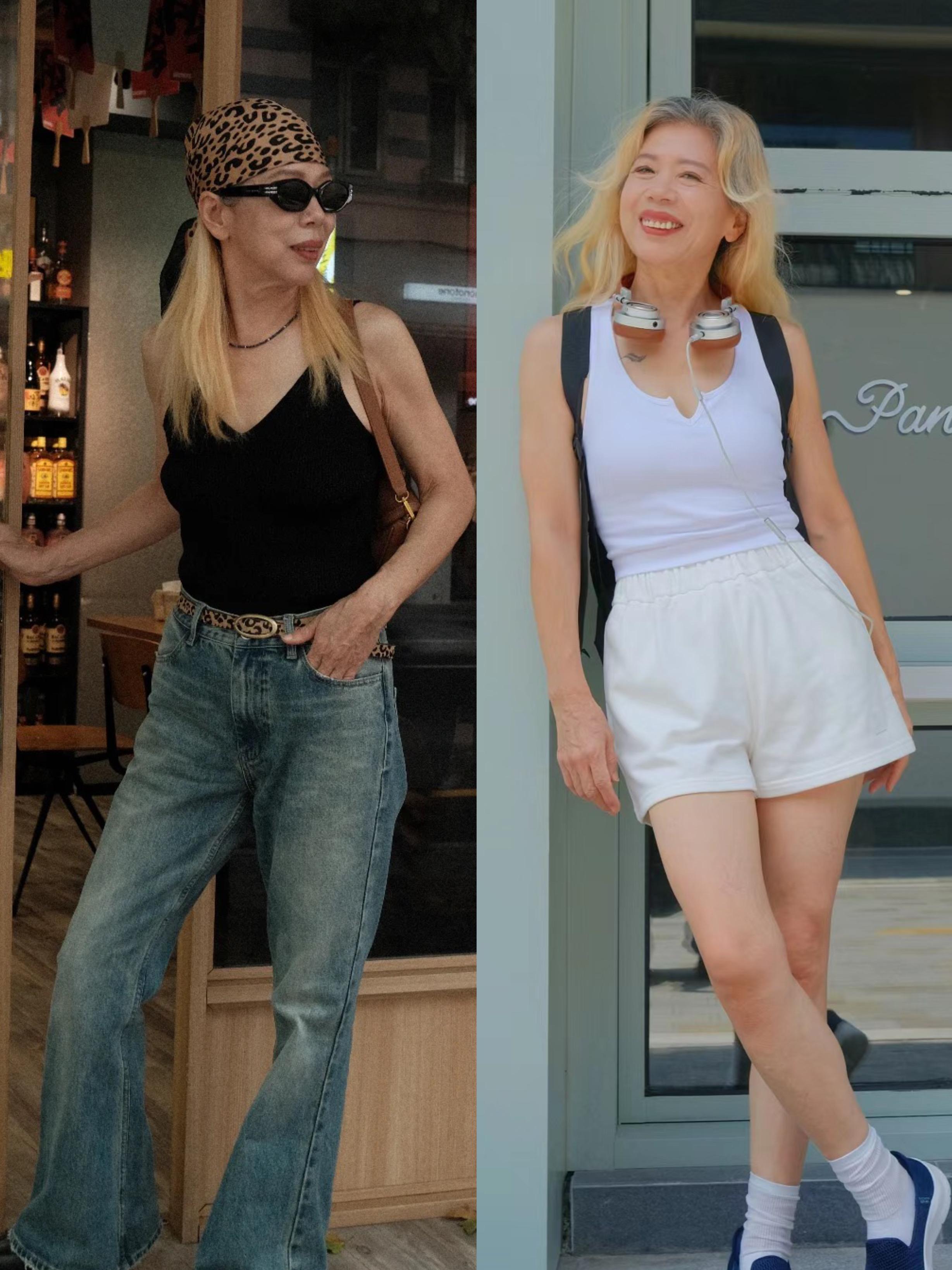 這位63歲的阿姨,從來都不穿老年裝。不僅如此,他還更偏愛少女屬性比較強的單品。比如修身的吊帶、短款的小上衣等等。