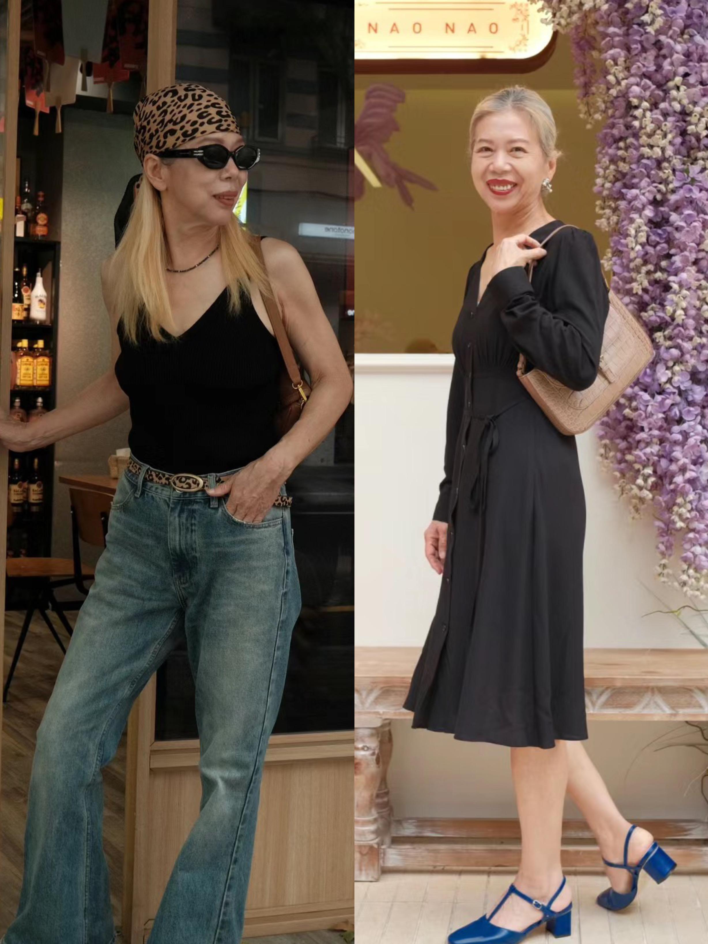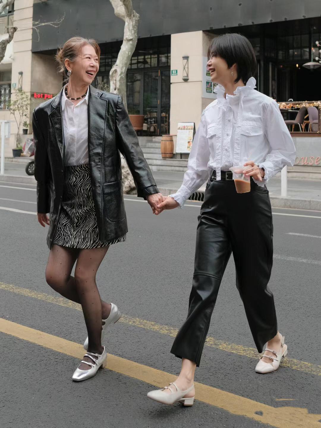 這位63歲阿姨,也有一位女兒。二人性格差異比較大、但同樣的時髦出彩。