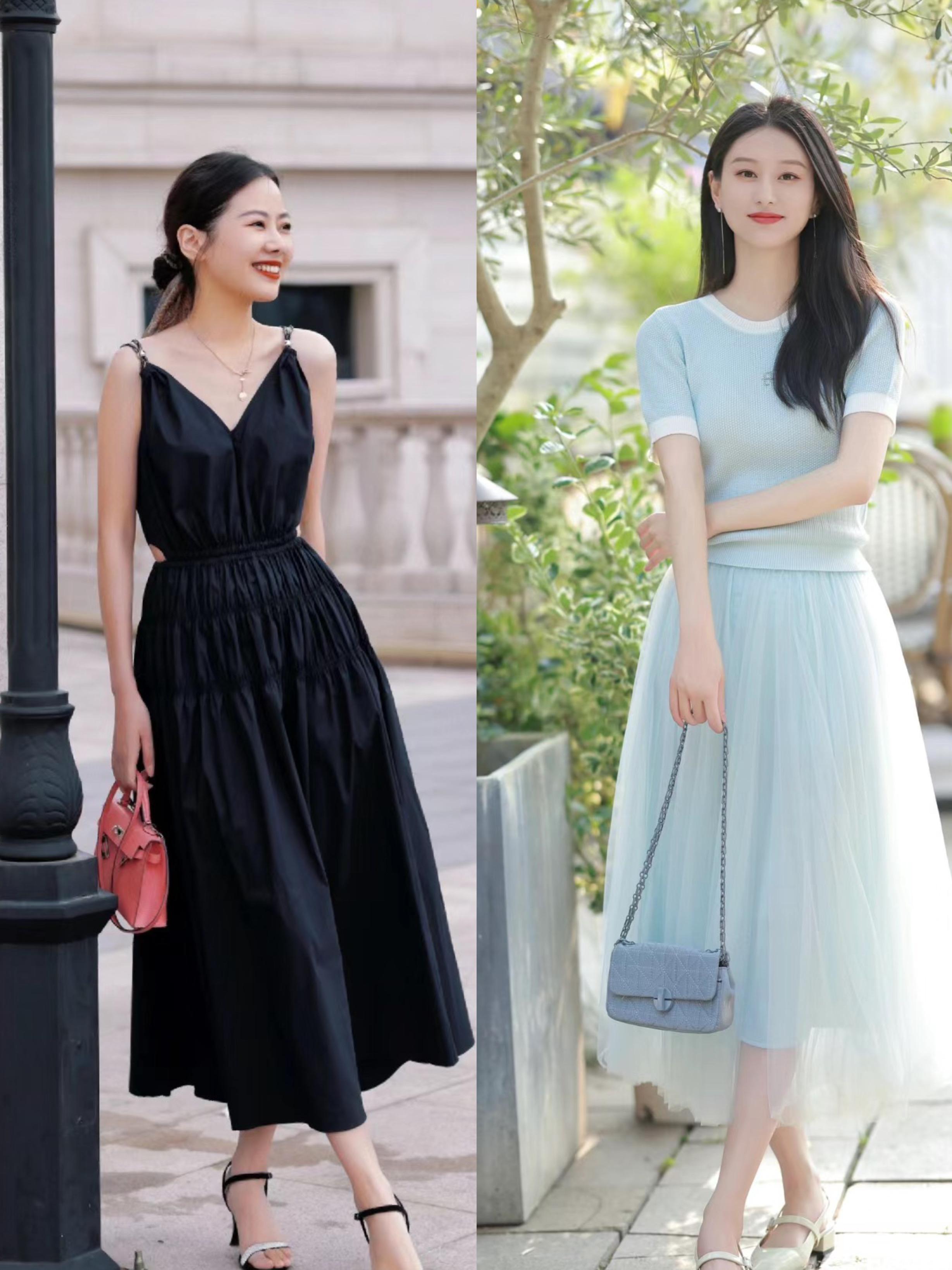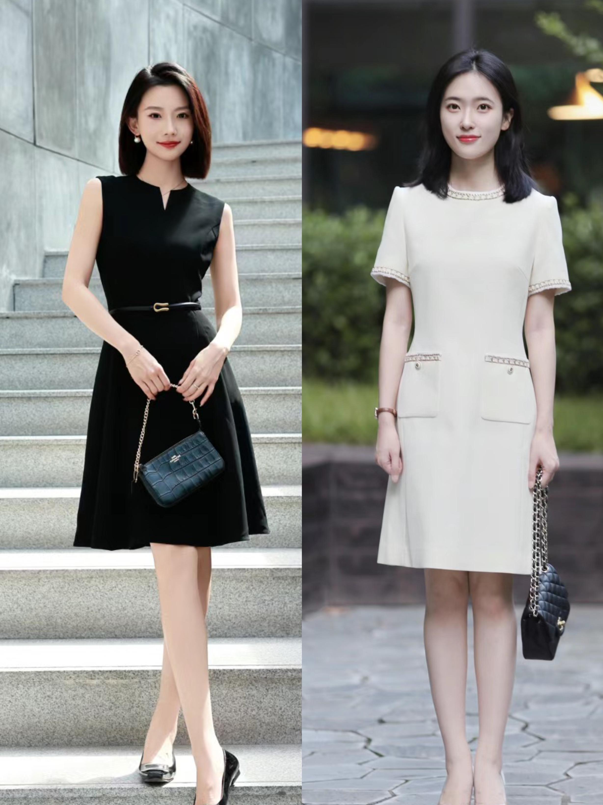 就像黑色連衣裙,收腰+傘裙的裙襬,既高級顯瘦、又可以掩蓋腰胯粗壯。如果是梨形身材,穿起來也毫無壓力。這樣的小黑裙,面料太輕盈氣場就顯得不足了。