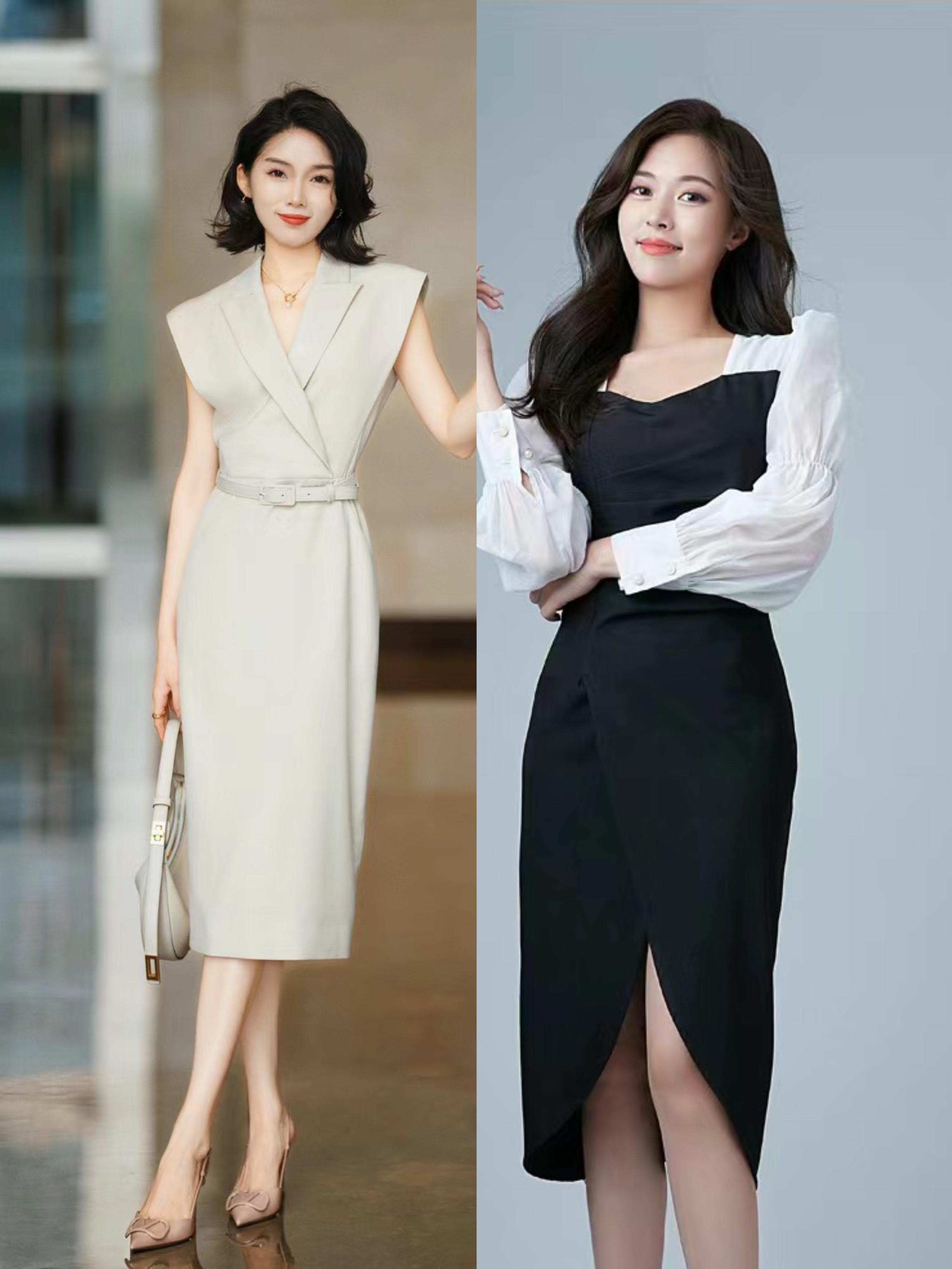 長裙的面料可以輕盈、可以飄逸,及膝的連衣裙則更加註重高級感的呈現。尤其是西裝連衣裙、或者小香風連衣裙,都需要面料的考究細節的完美。