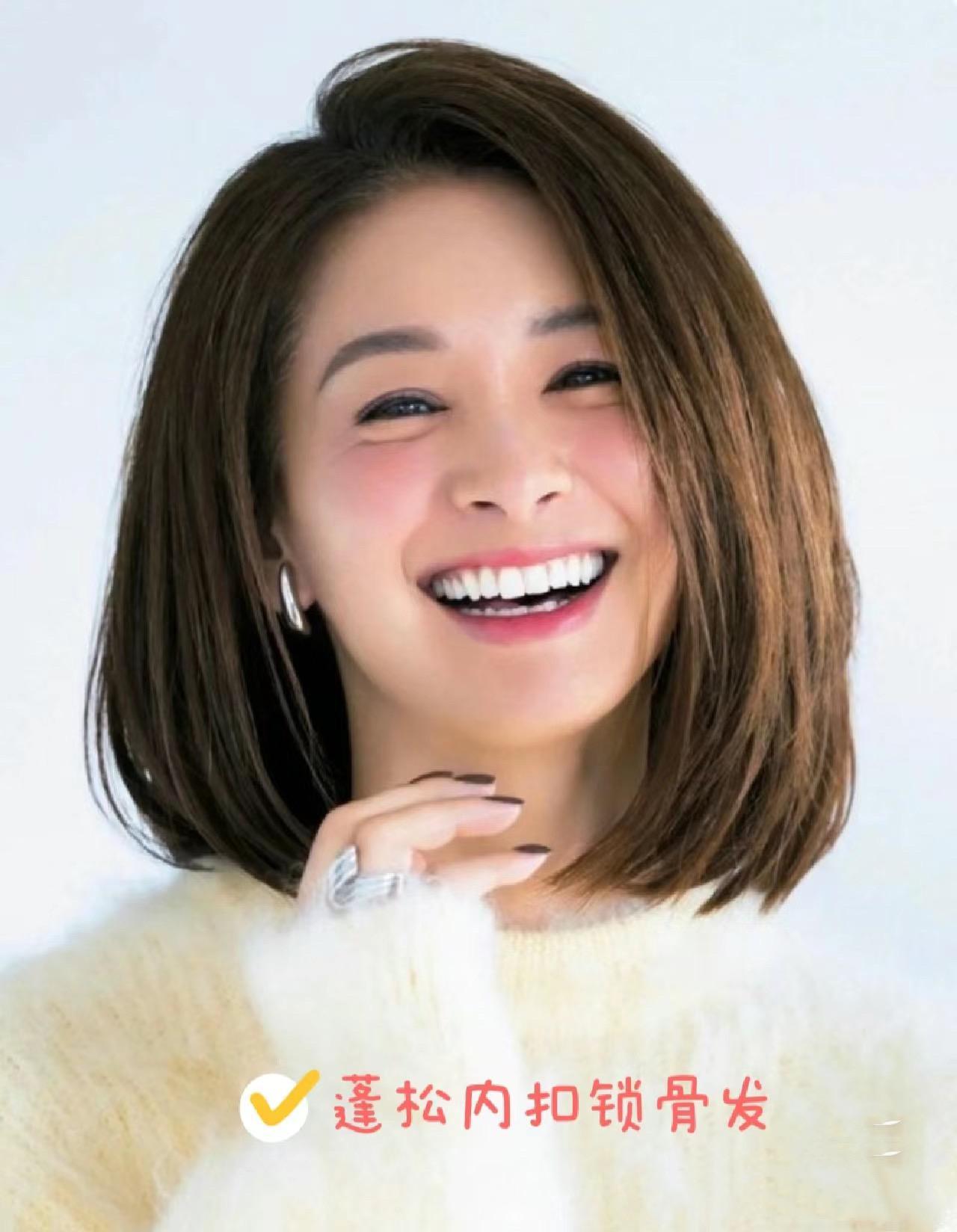 這種帶有蓬鬆感的內扣鎖骨發,對於臉型圓潤、或者微胖的女性都很友好,可以修飾臉型、顯得臉型更加流暢。