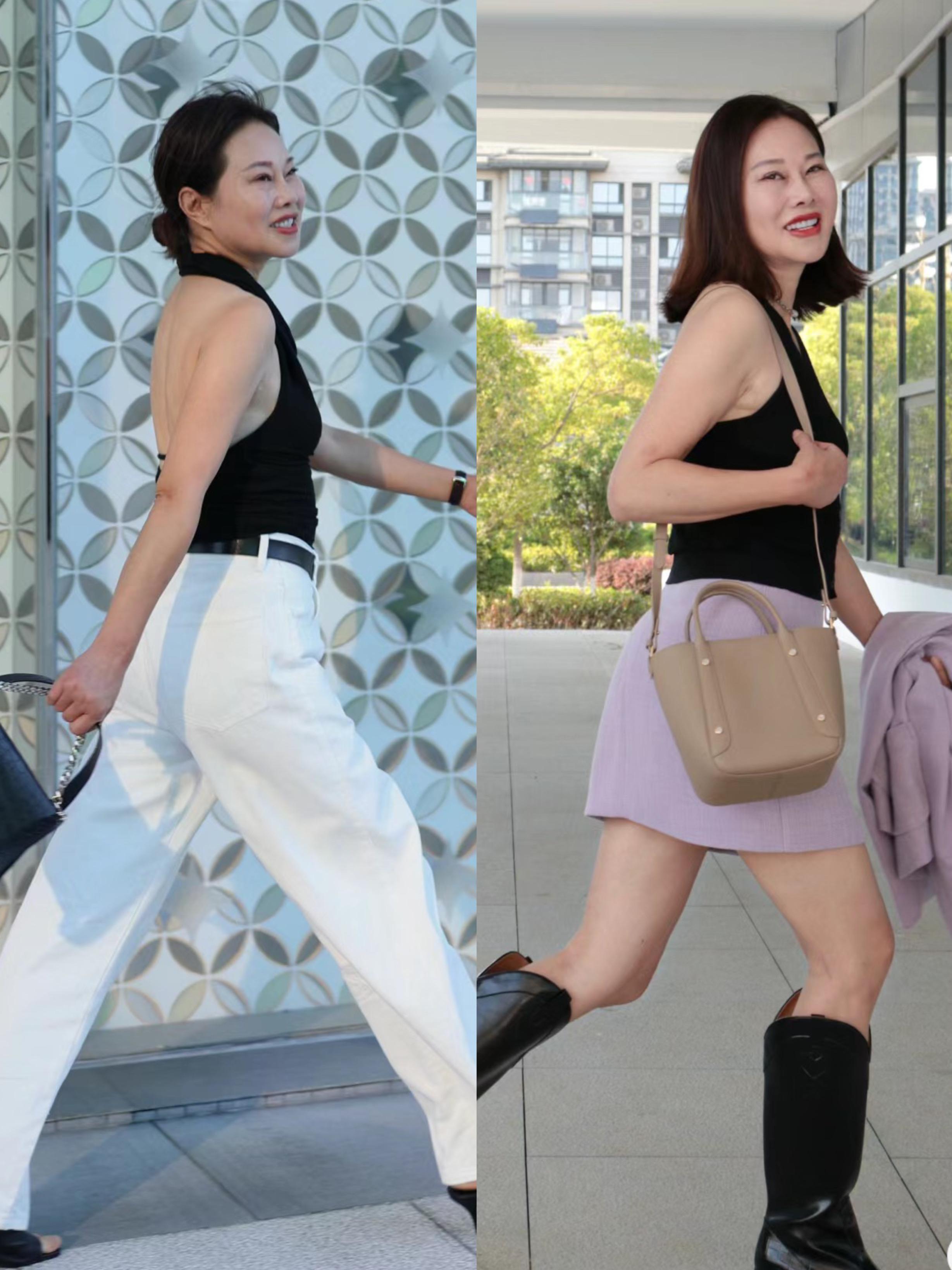 六十多歲的年紀,還可以和女兒共享衣櫥,纔是真正的時尚。這位阿姨穿黑色小背心配高腰的闊腿褲,時髦洋氣、酷颯醒目,很減齡。