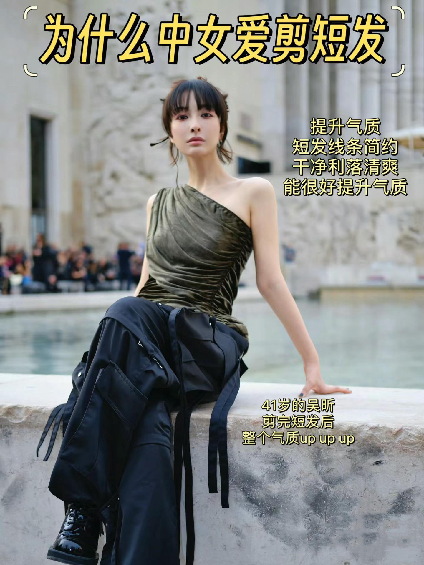 長髮的吳昕總是給人一種文文弱弱的感覺,但她剪了短髮以後,整個人的氣質都變得利落清爽起來,格外的酷颯。