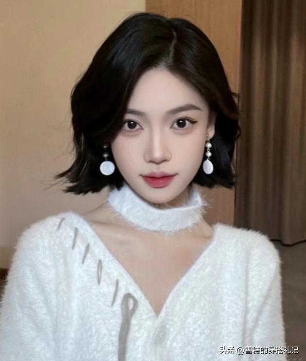 如果臉上有顴骨突出和太陽穴凹陷特徵的話,那麼短髮的長度並非越短越好。最好是不能短於下巴的長度,選擇齊下巴或者是到肩部位置的長度。這樣的短髮修飾力會更強,可以兼具大氣、溫柔和優雅的襯托效果。並且能夠很好的包裹住整個臉部的輪廓,襯得我們的臉型更加小巧精緻。