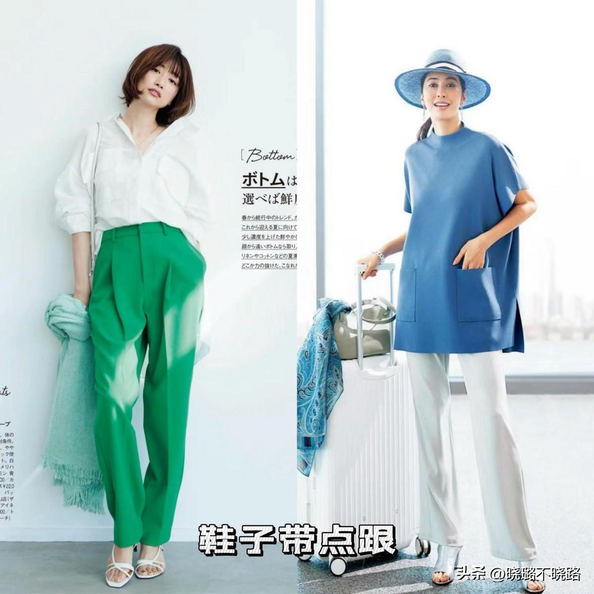 日本主婦的個子一般都不高,所以她們在搭配長褲的時候,就很喜歡跟帶跟的鞋子進行組合。相比起高跟鞋,日本主婦更愛低跟鞋,鞋跟在3~5cm左右的鞋子,穿在腳上更加舒適穩健。